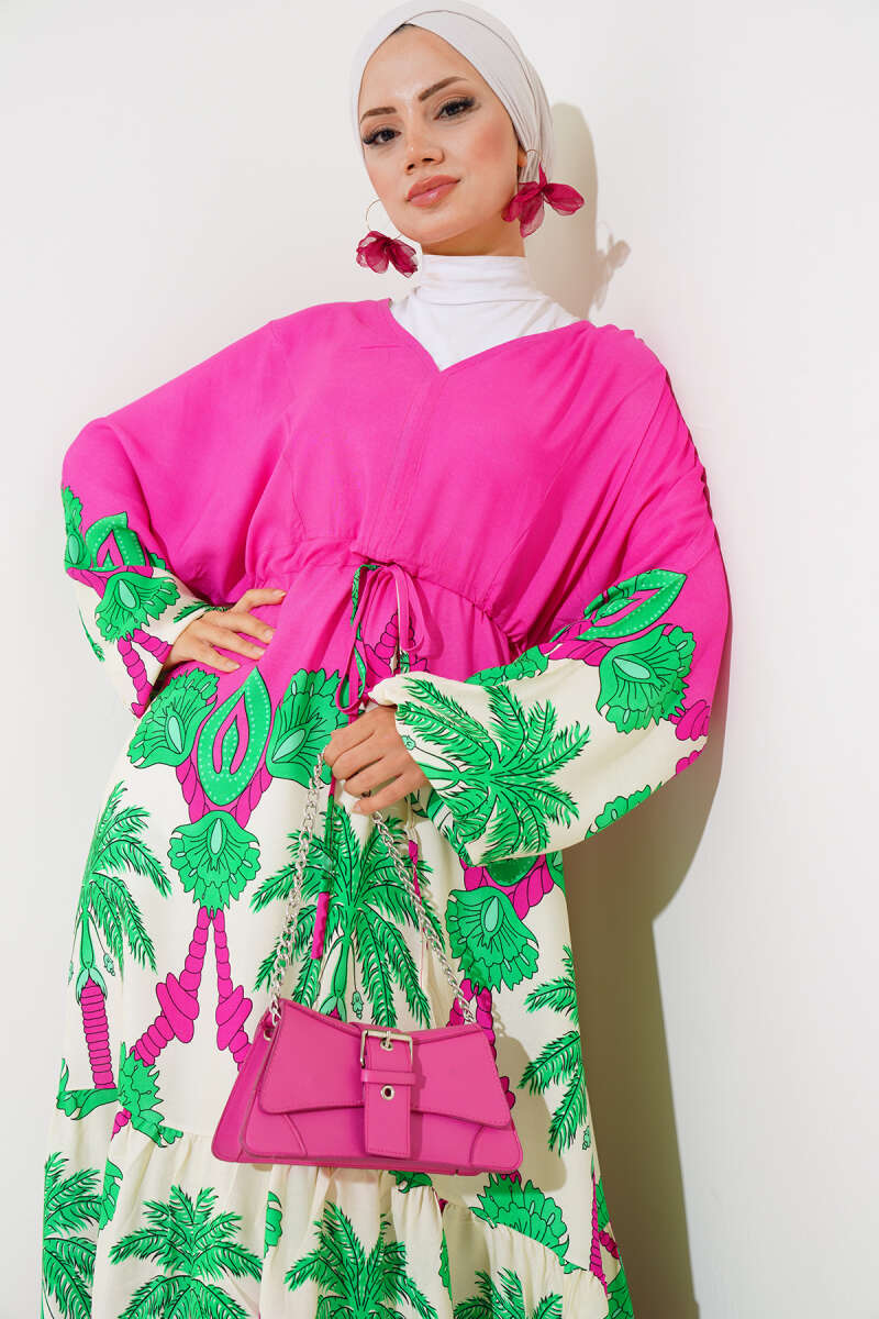 Çiçek Desen Yarım Düğmeli Kat Elbise Yeşil