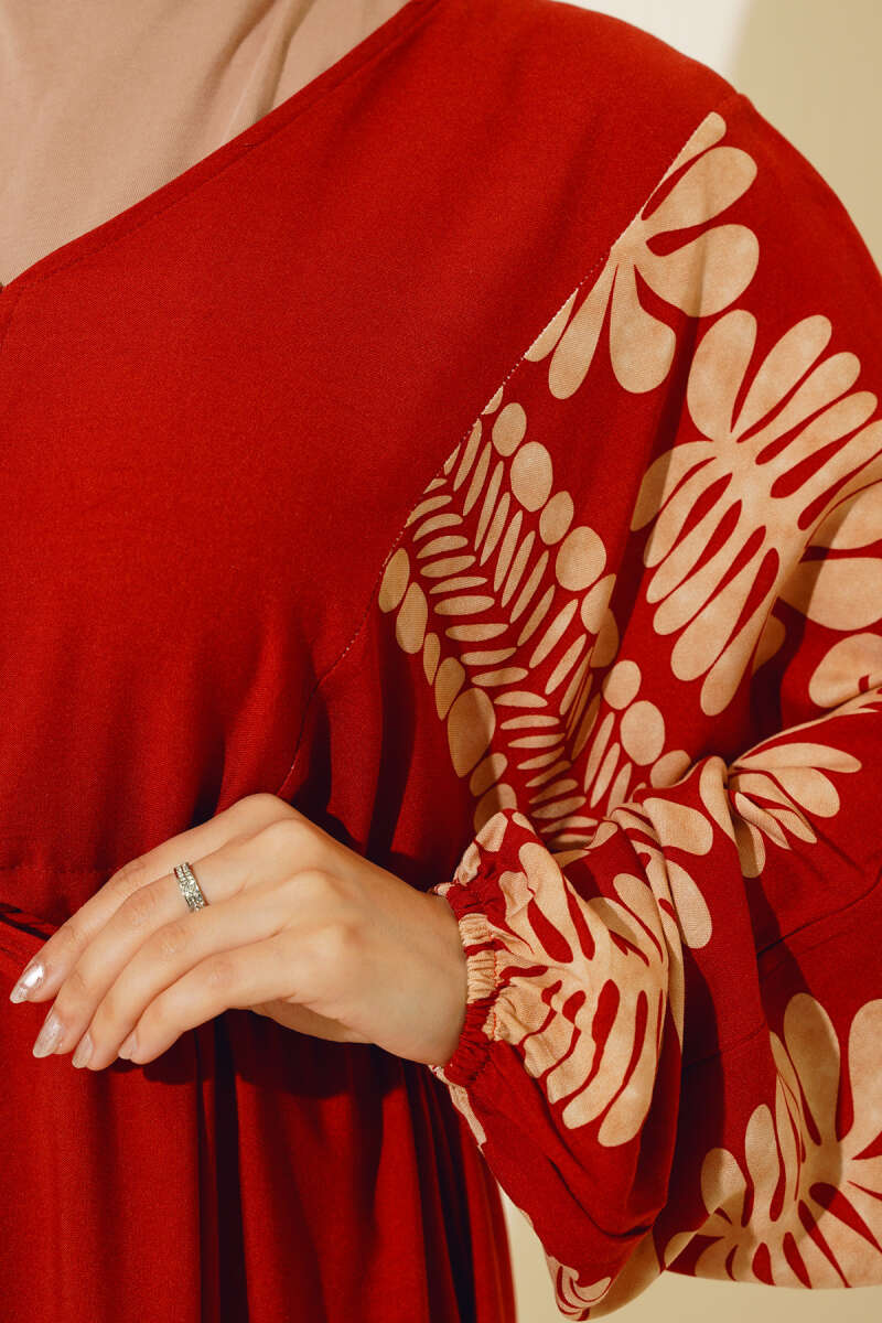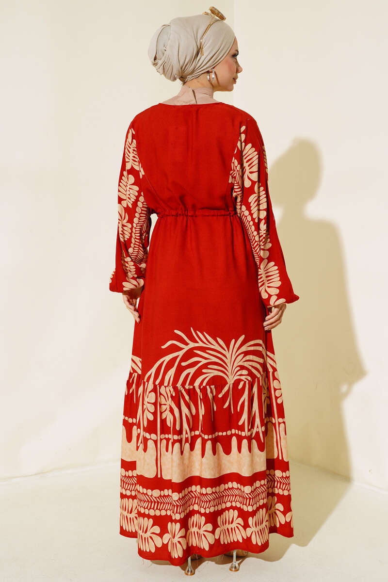 Kolları Fiyonk Detaylı Selanik Elbise Kahve