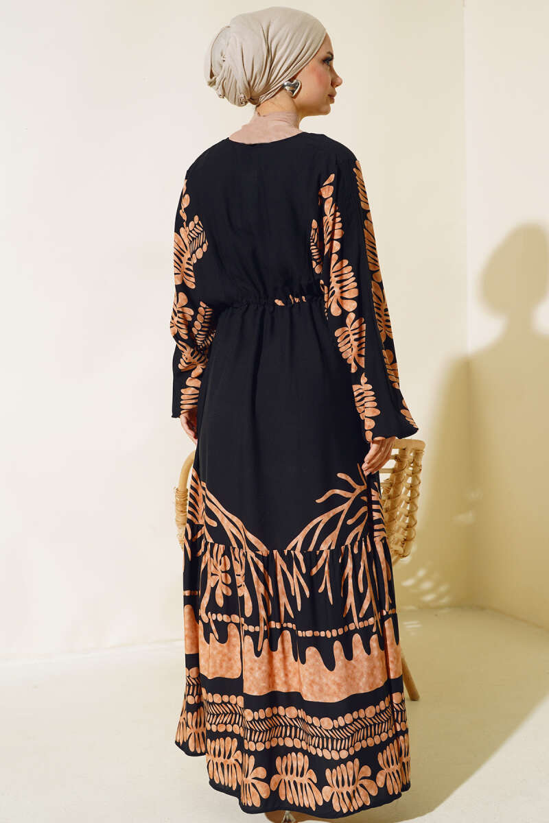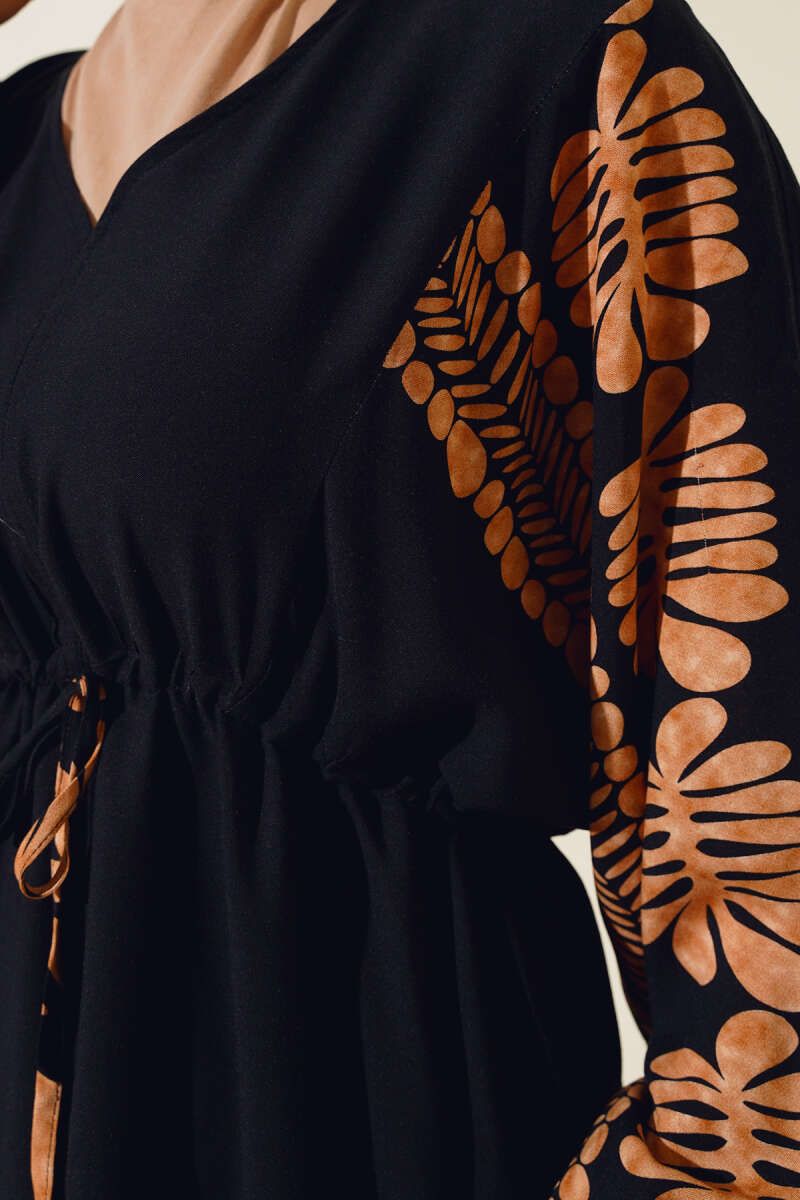 Yarım Gizli Düğmeli İp Bağcıklı Elbise Siyah
