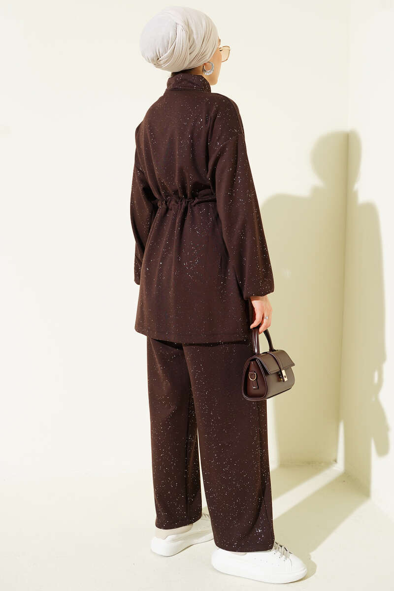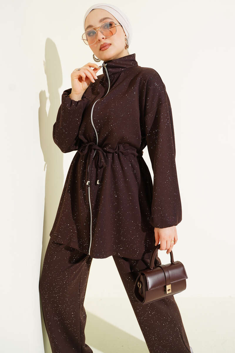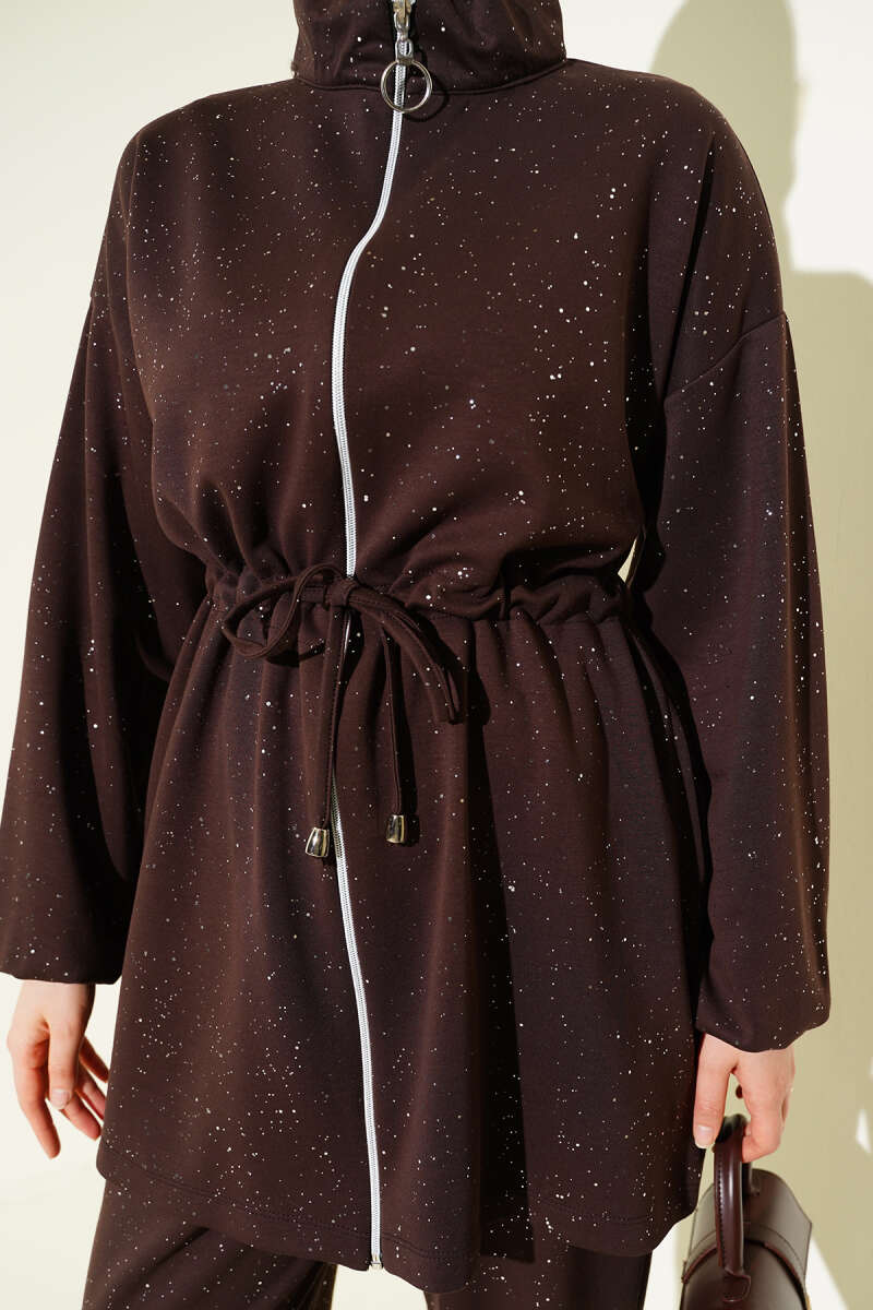 Loyşa Sim Detaylı Kapüşonlu İkili Takım Kahve