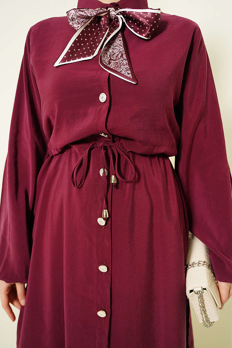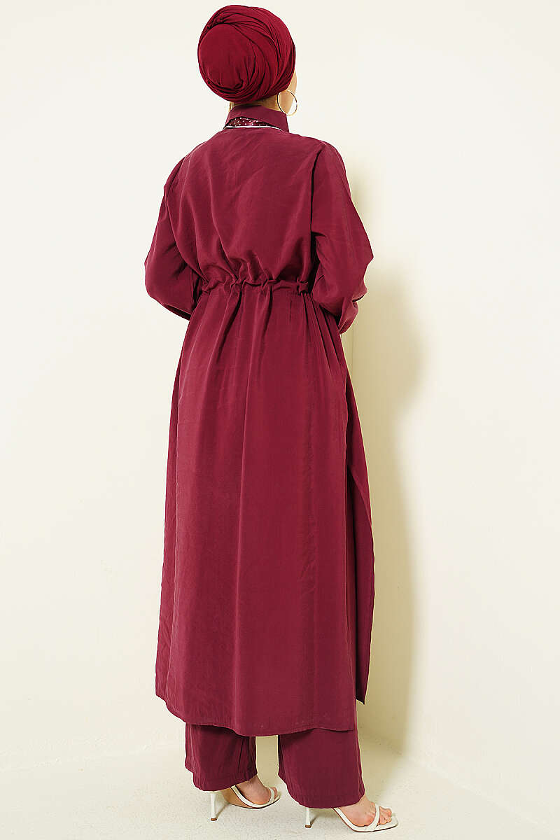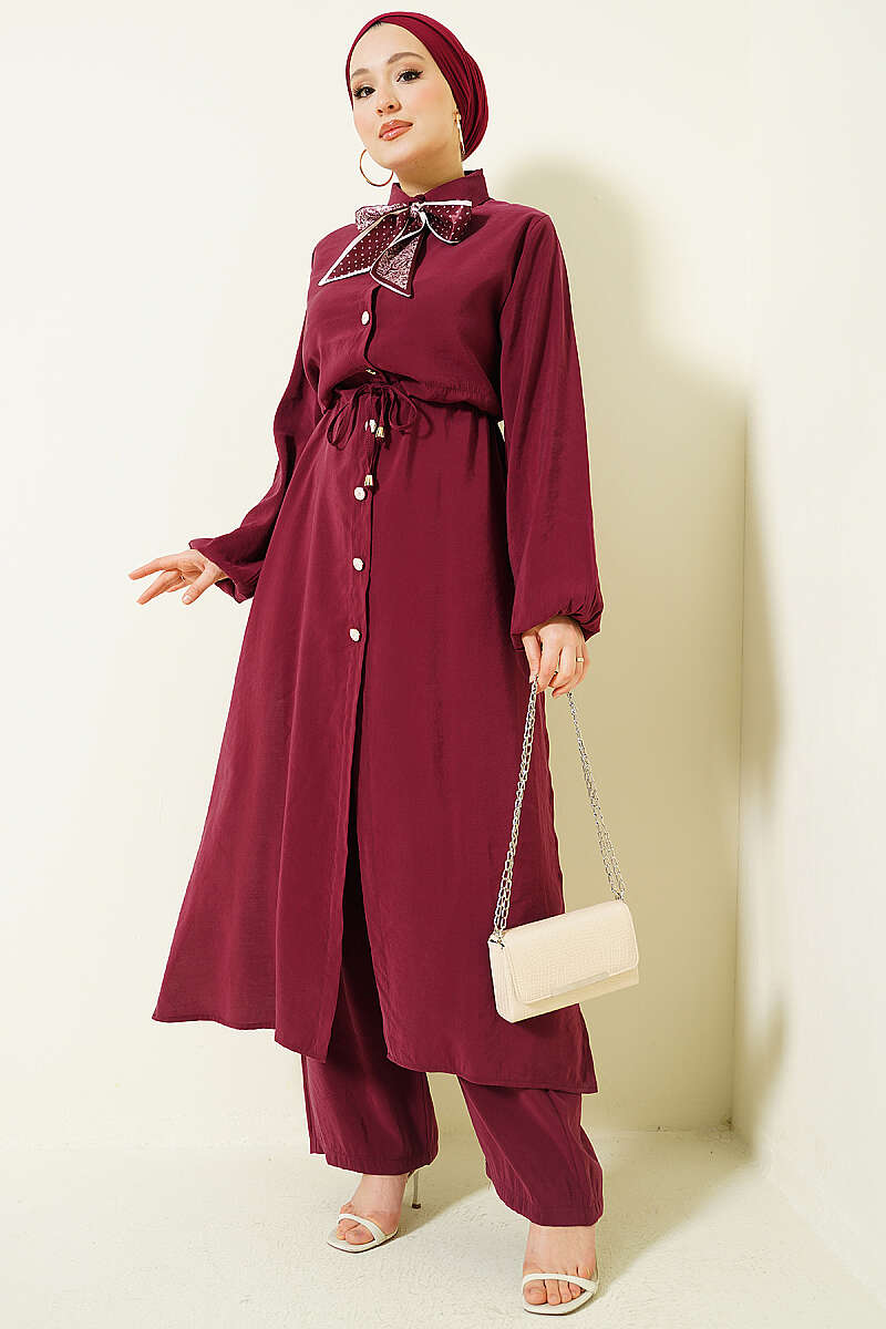 Bel Tünelli Uzun Tunikli Modal İkili Takım Bordo