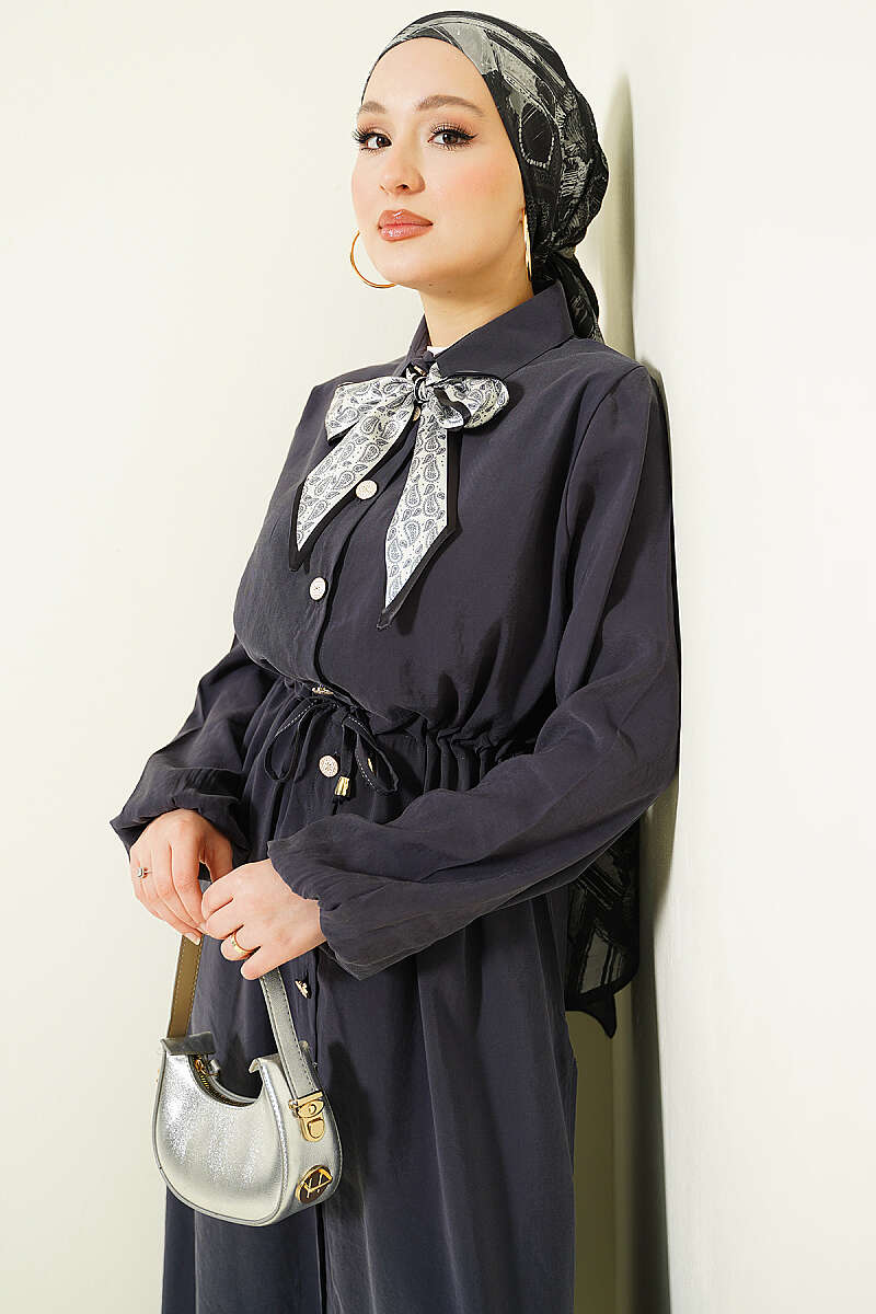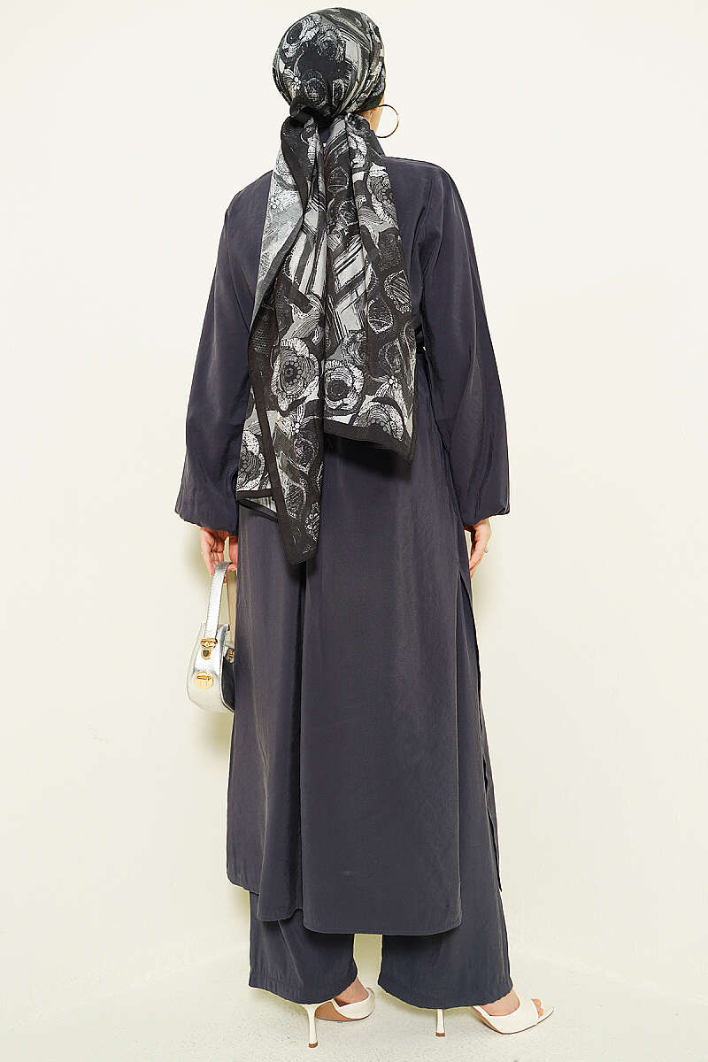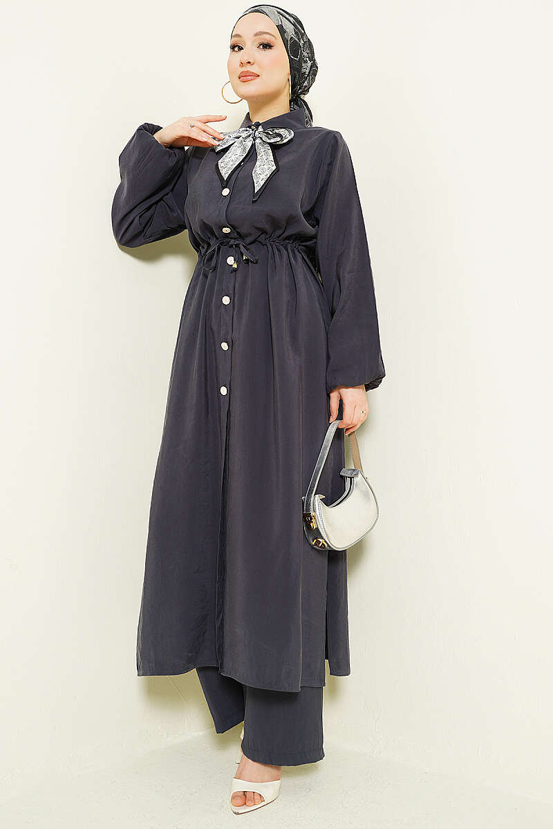 Bel Tünelli Uzun Tunikli Modal İkili Takım Füme