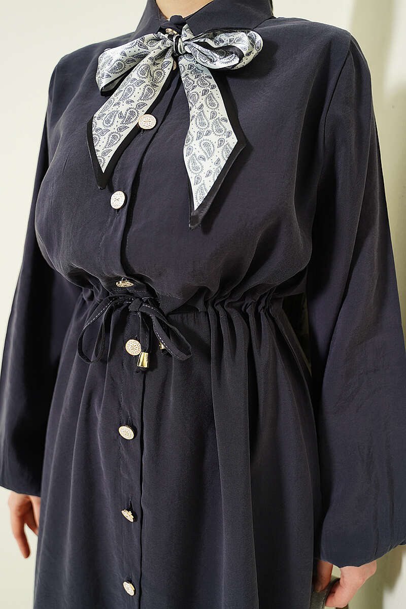 Çapraz Gold Düğmeli Kuşaklı İkili Takım Lacivert