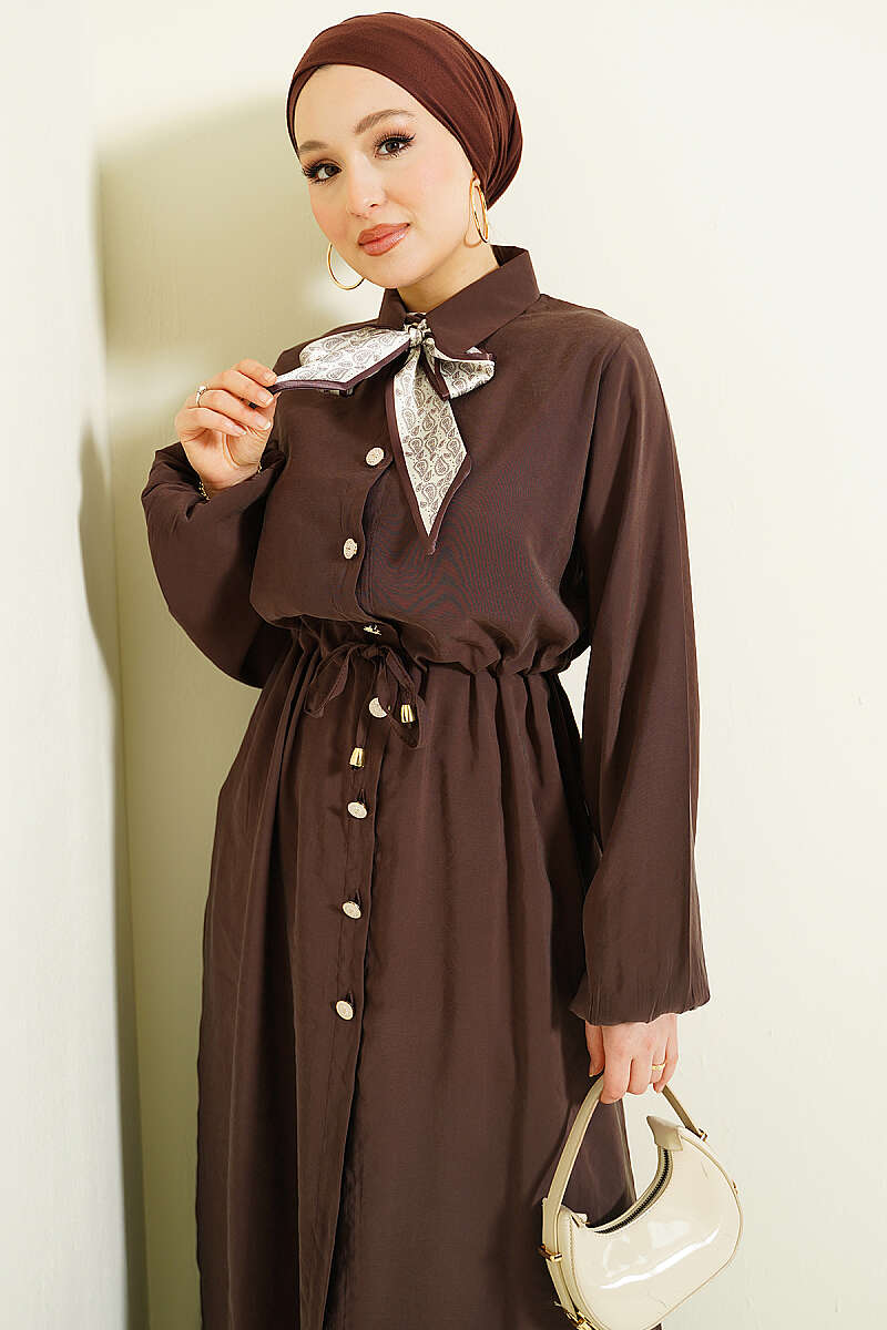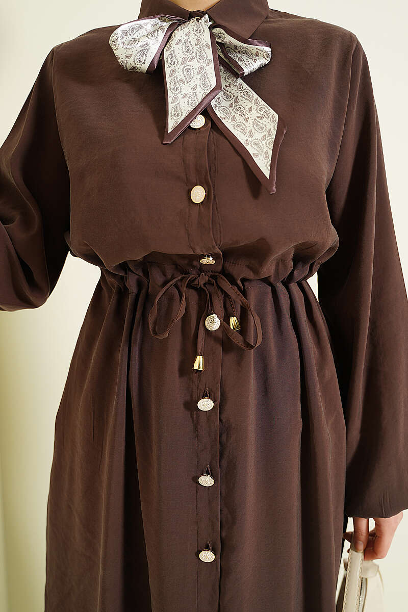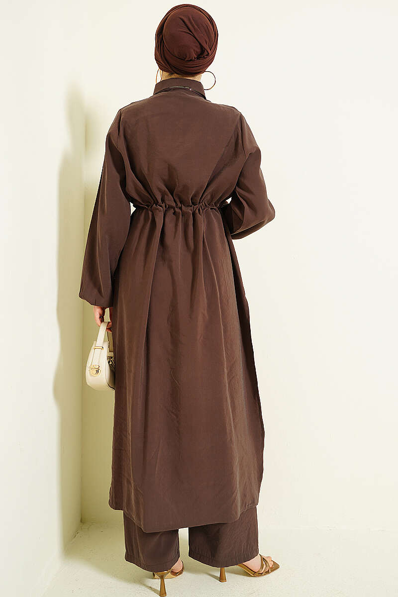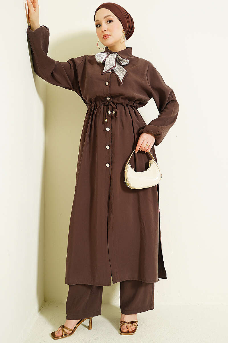 Bel Tünelli Uzun Tunikli Modal İkili Takım Kahve