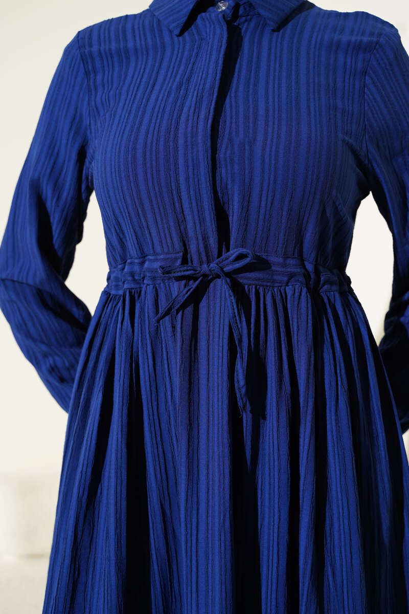 Gömlek Yaka Düğmeli Triko Elbise Lacivert