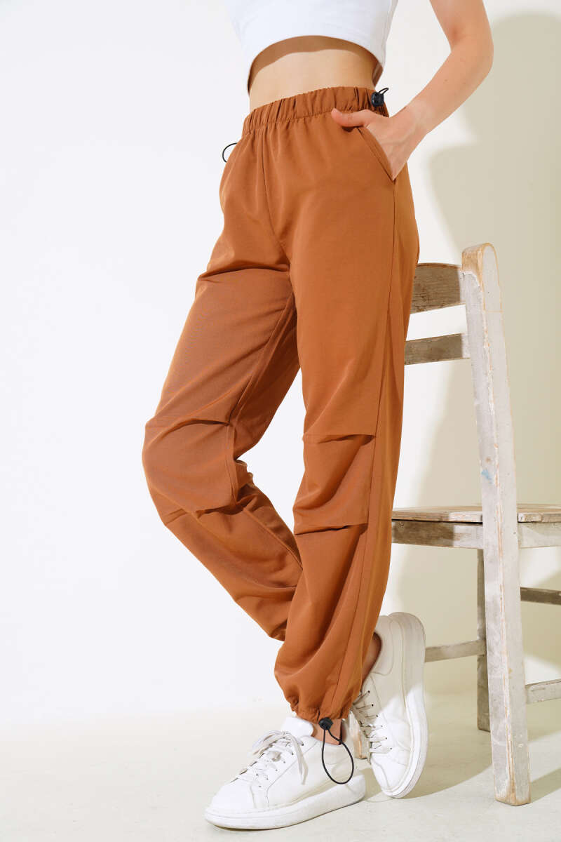 Bel Ve Paça Lastikli Paraşüt Pantolon Camel