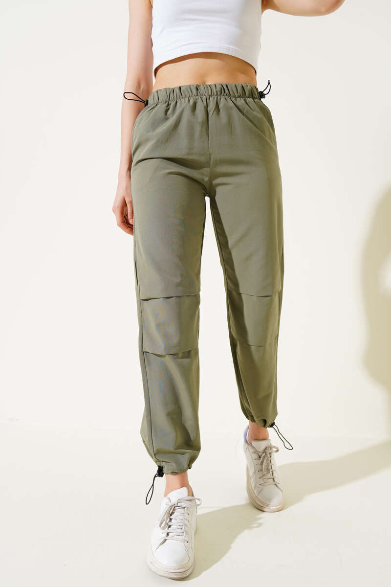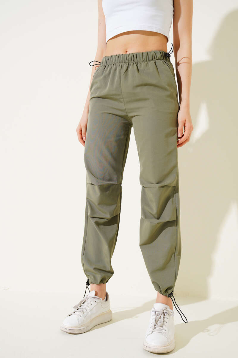 Bel Ve Paça Lastikli Paraşüt Pantolon Haki