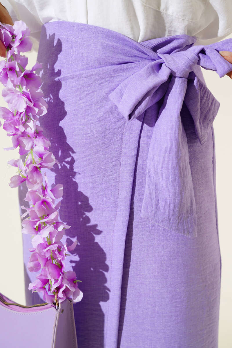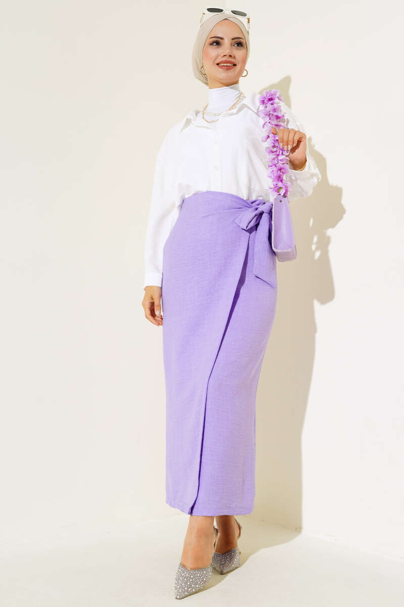 İp Bağlamalı Kloş Scuba Etek Lacivert