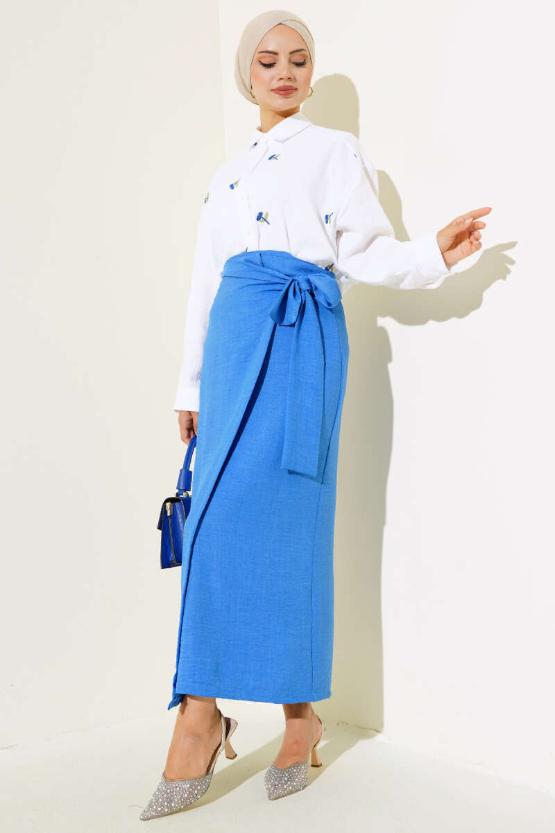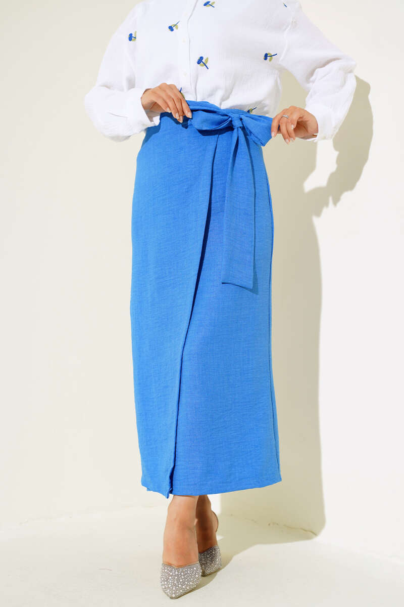 İp Bağlamalı Kloş Scuba Etek Lacivert