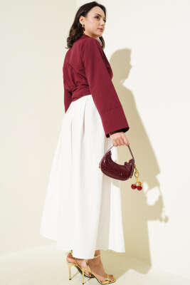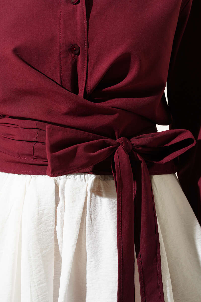 Gizli Düğmeli Bel Kuşaklı Gömlek Bordo