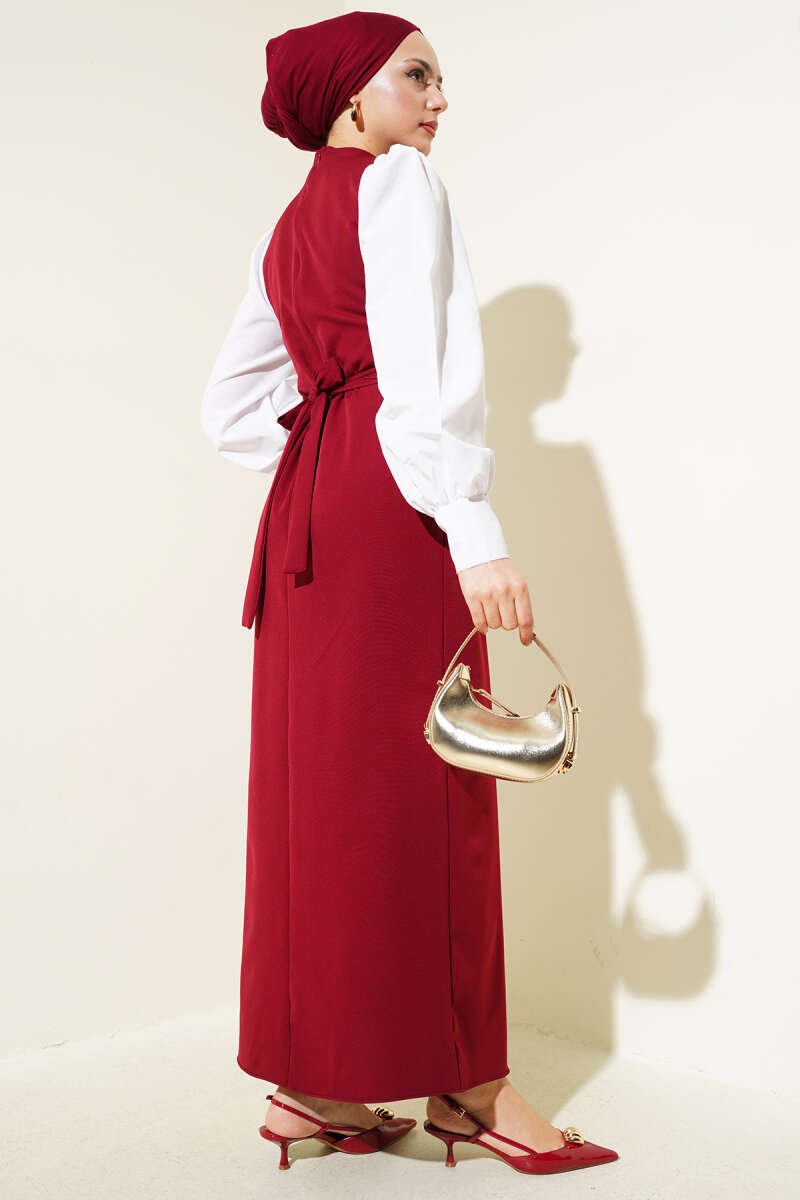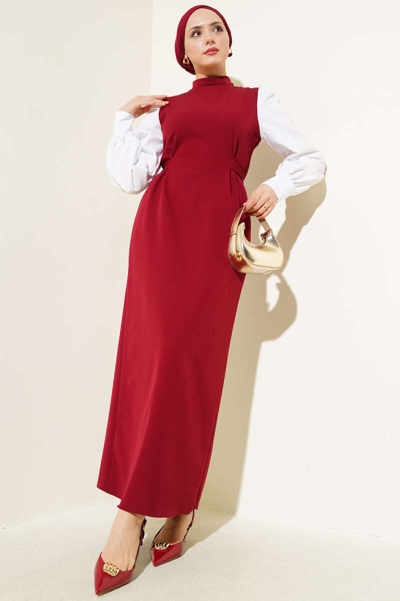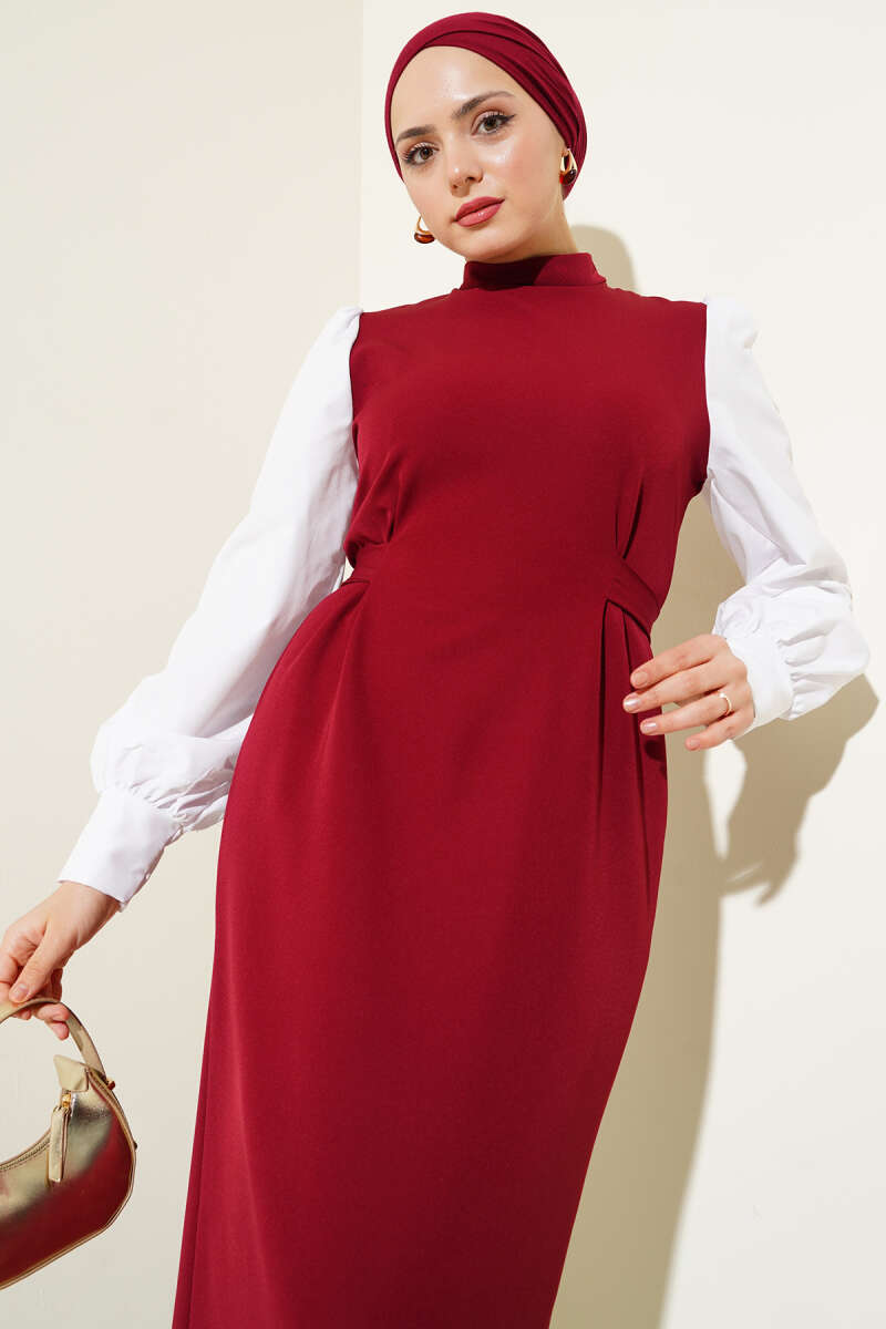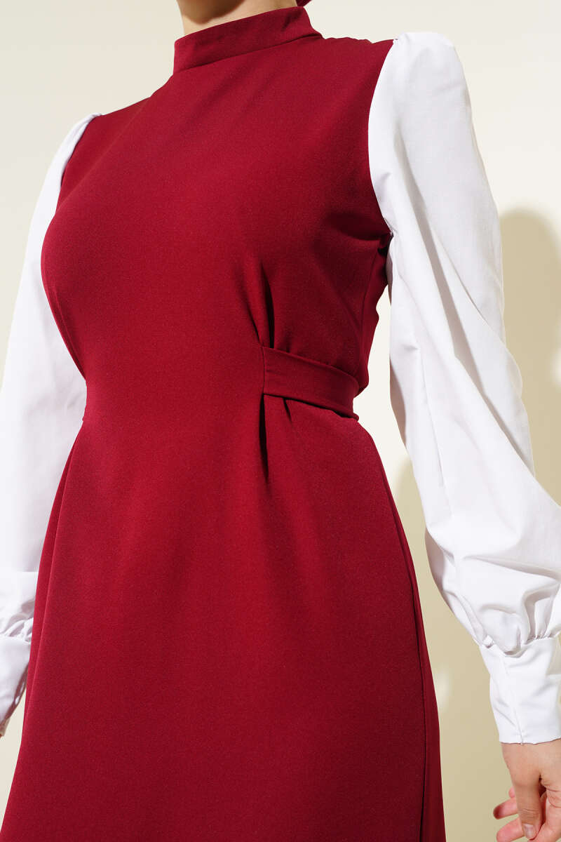 Gömlek Yaka Düğmeli Triko Elbise Bordo