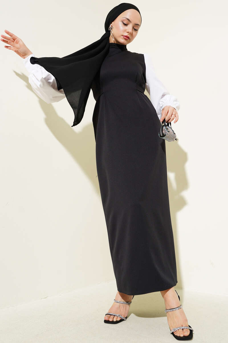 Omuz Pelerinli Taş Detaylı Abiye Elbise Siyah
