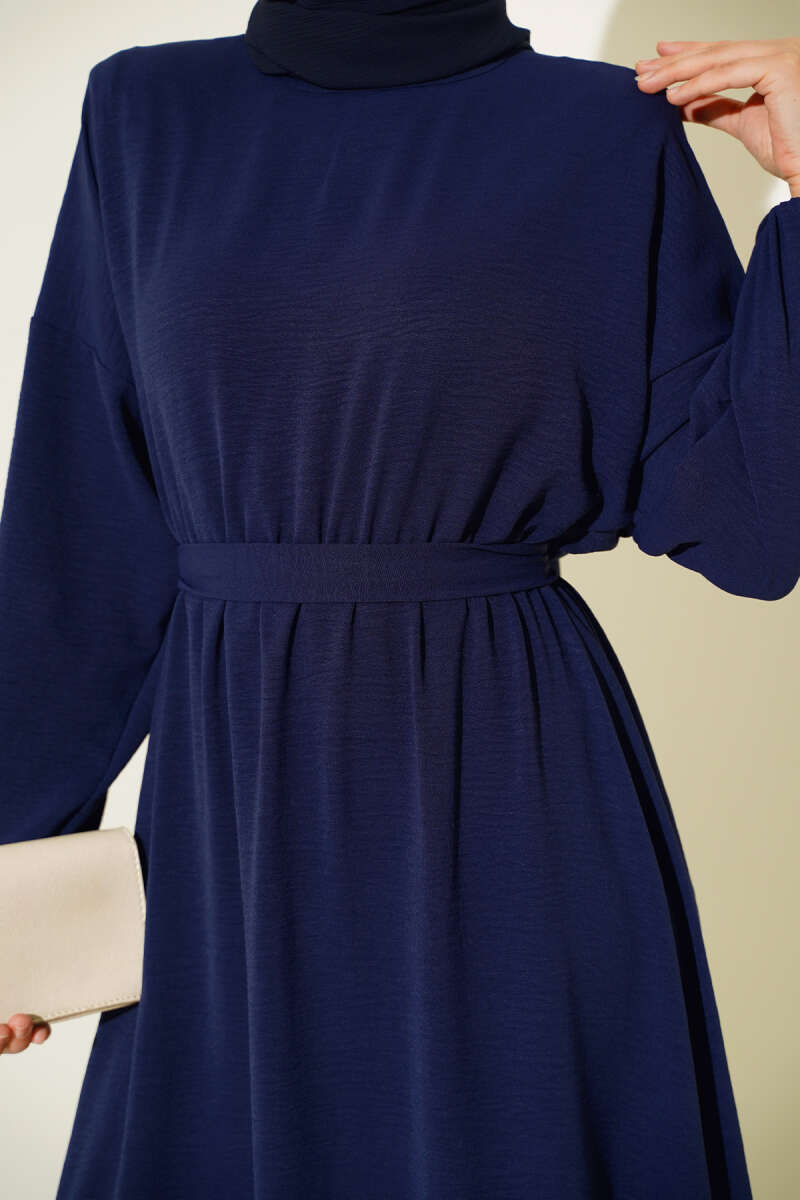 Önü Bağlama Detaylı Keten Kimono Lacivert