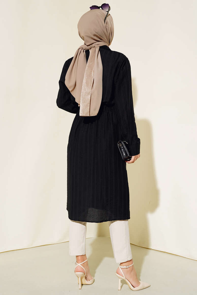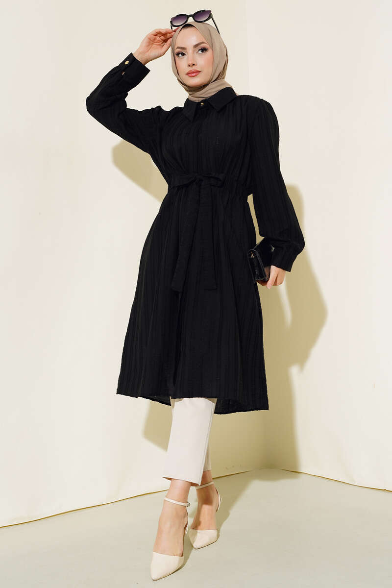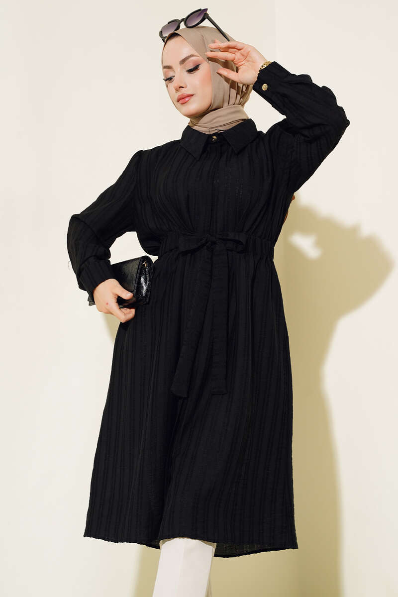 Belden Tünel Bağlamalı Uzun Tunik Siyah