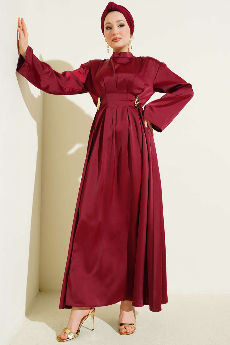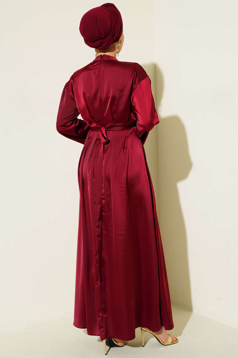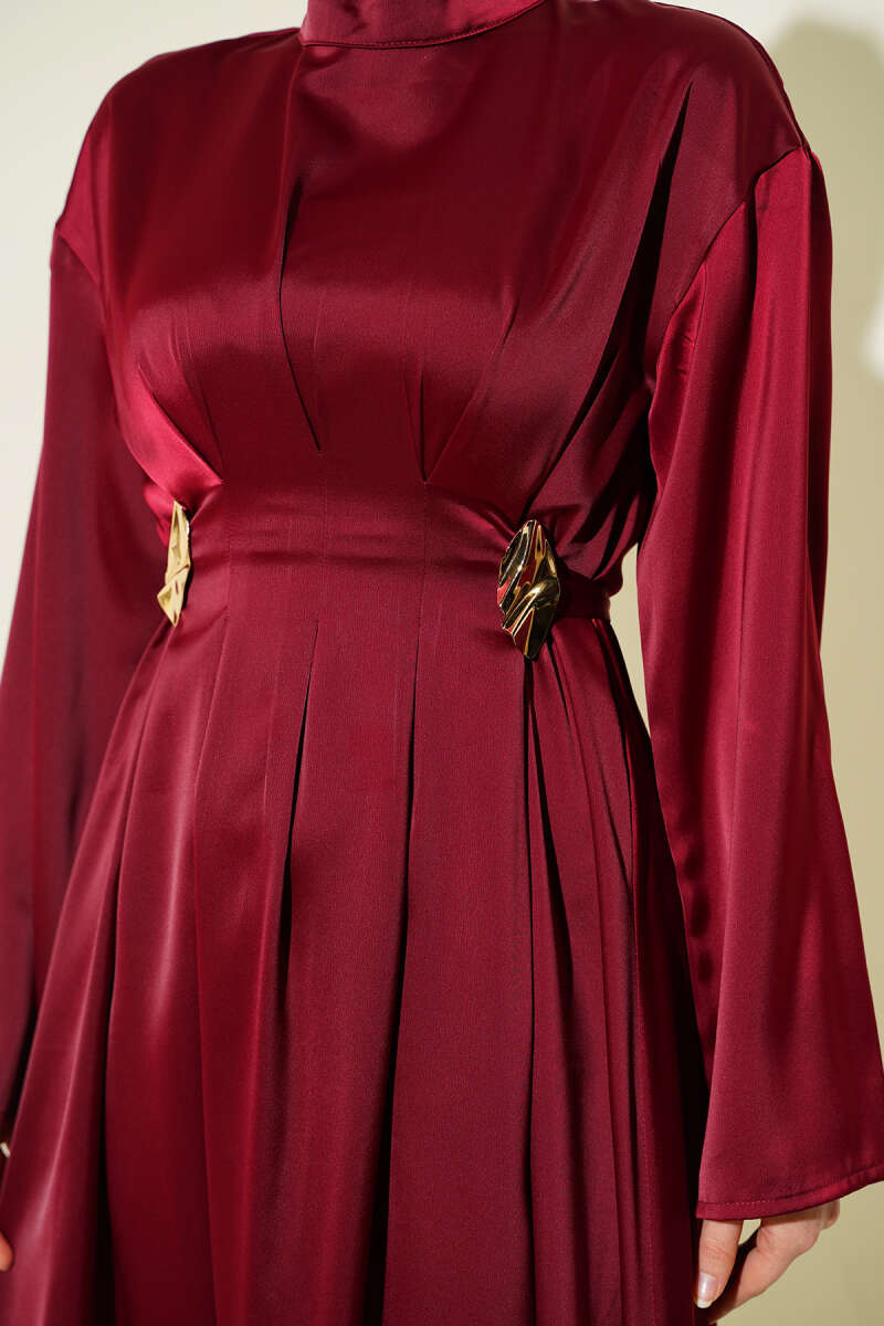 Beli Aksesuarlı Bağlamalı Abiye Elbise Bordo