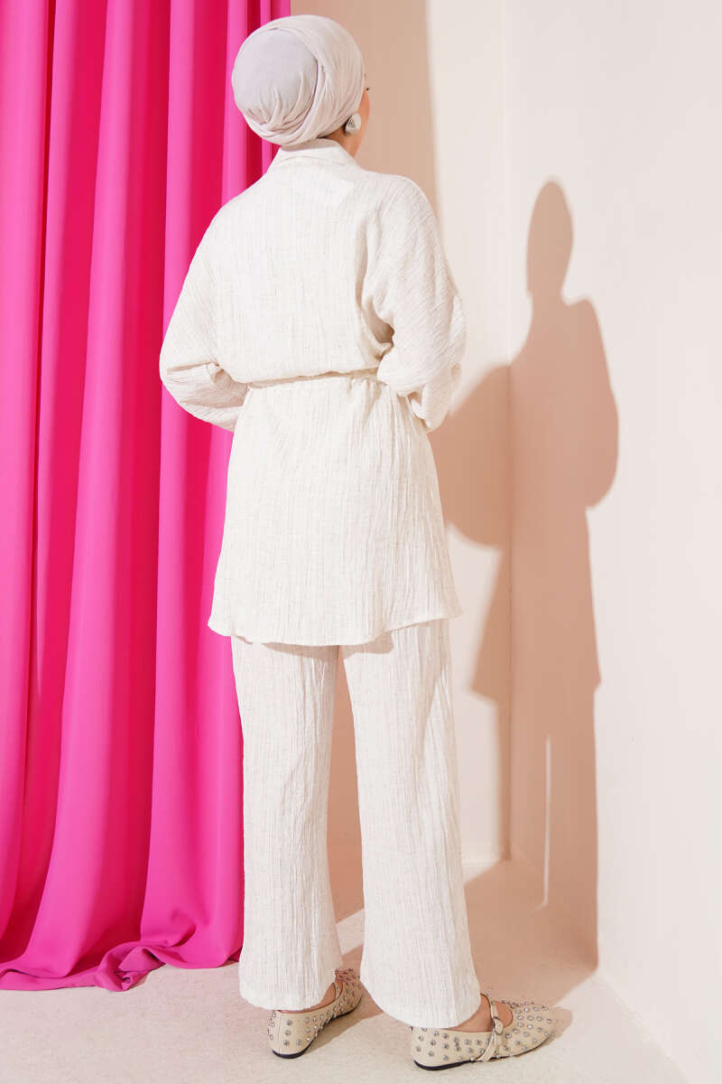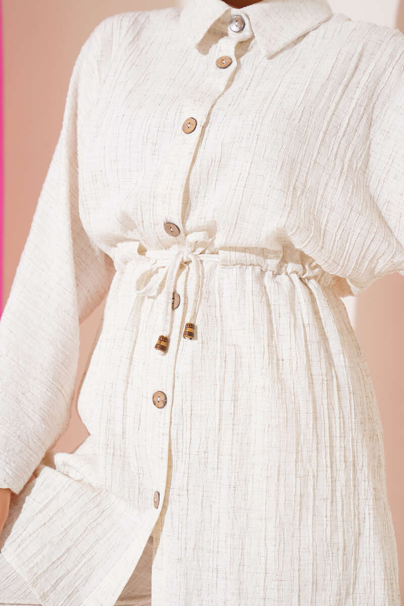 Önü Çımalı Tunik İkili Takım Bej