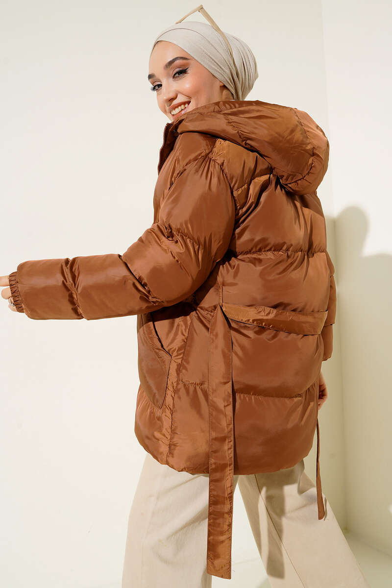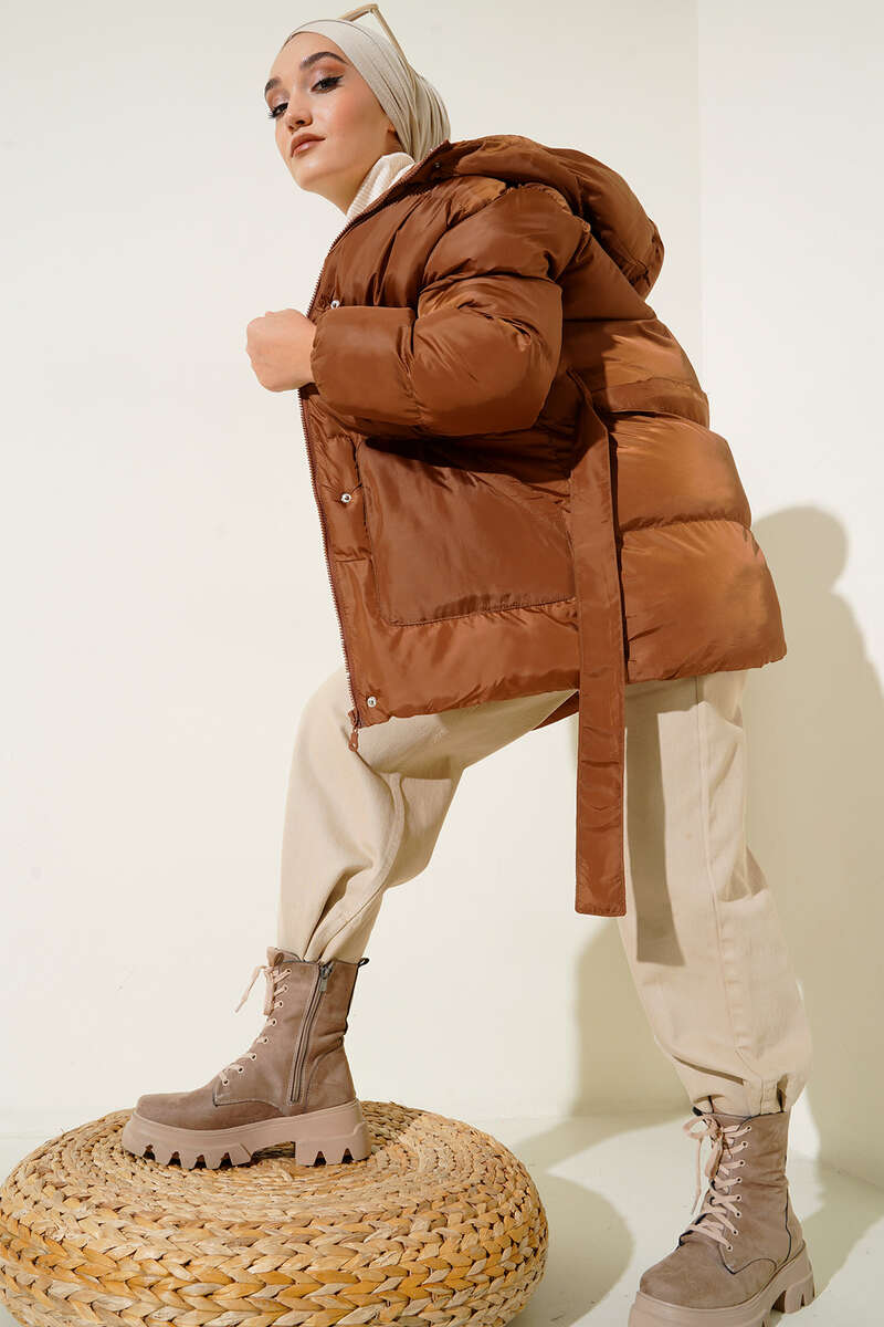 Beli Bağlamalı Şişme Mont Taba
