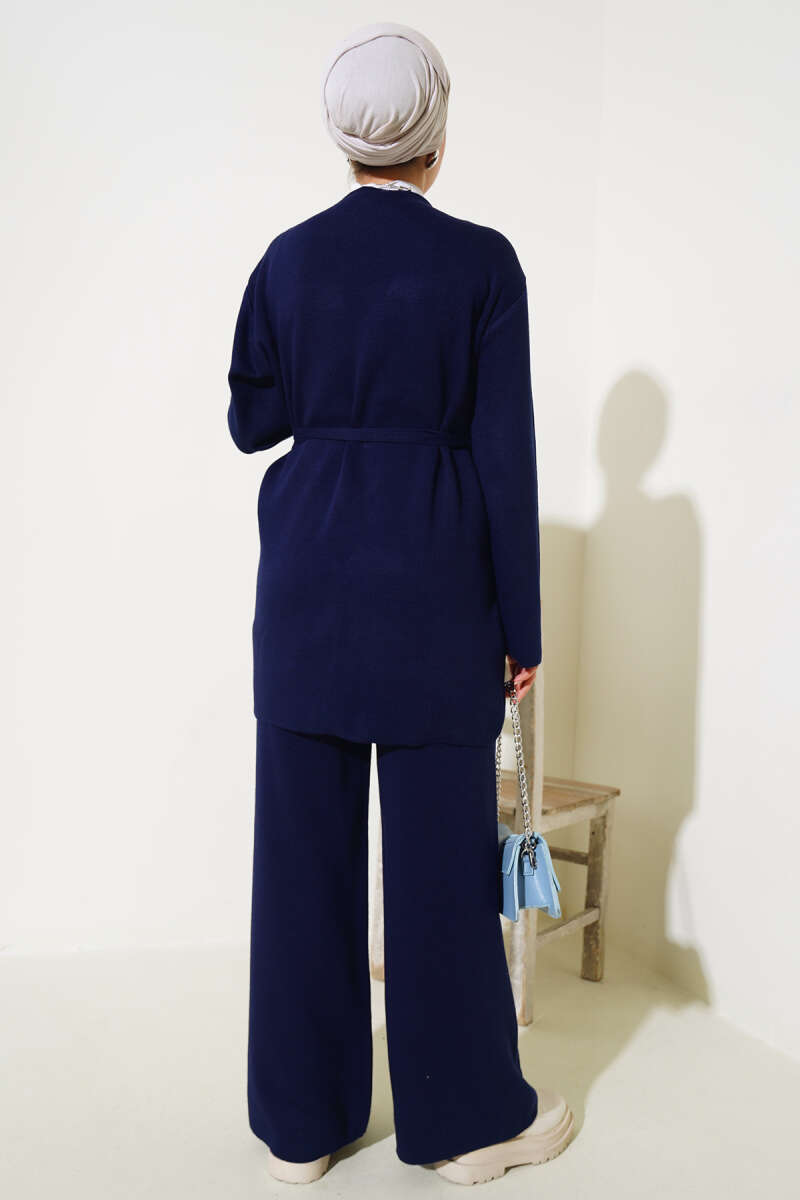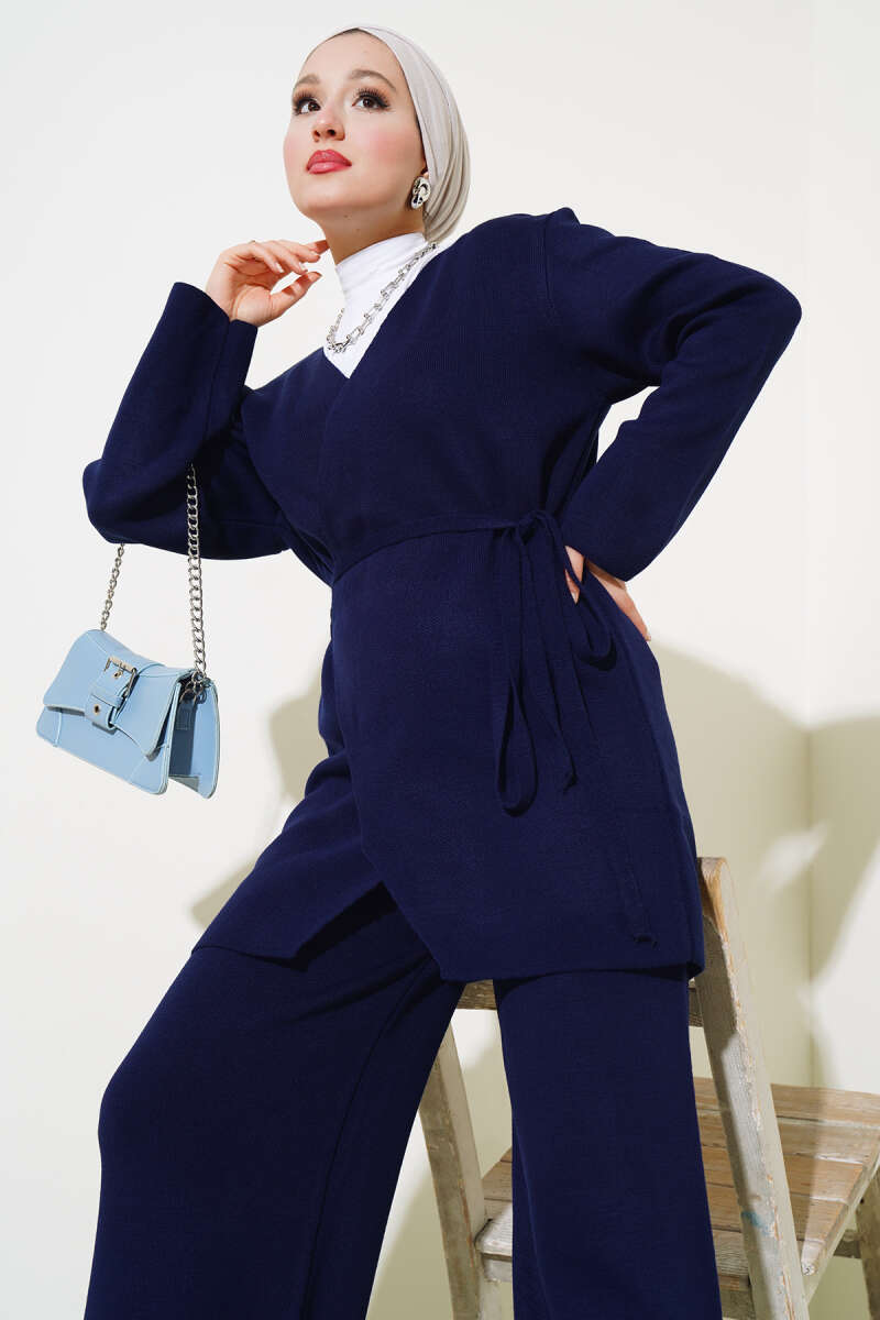 Balon Kol Balıkçı Yaka Triko İkili Takım Lacivert