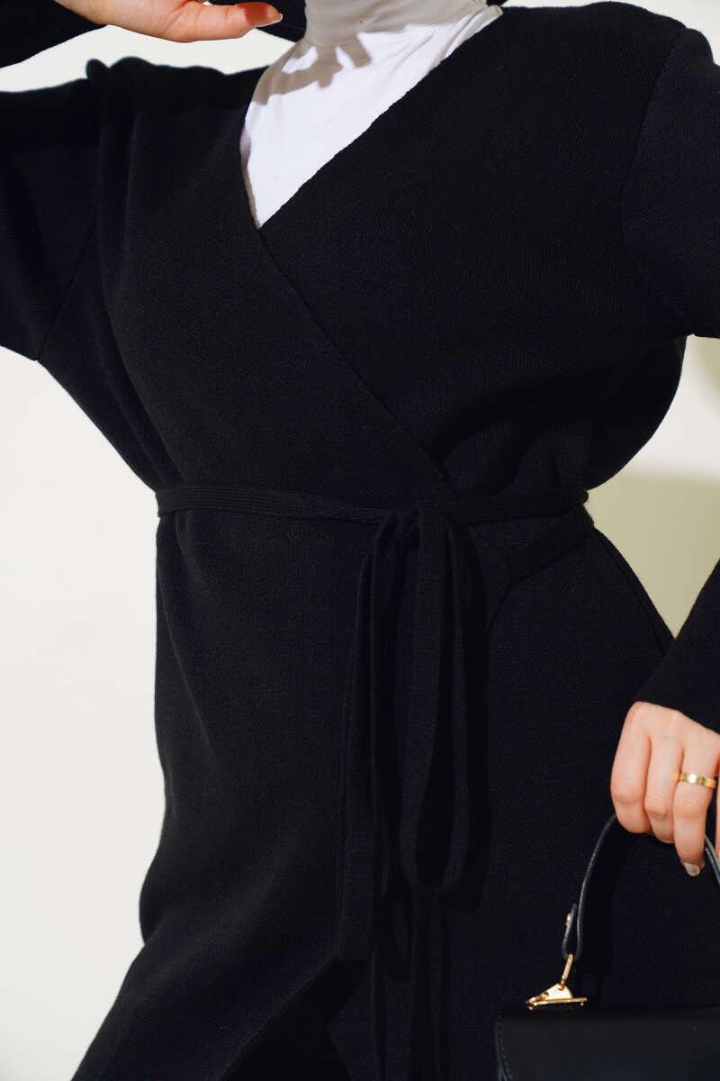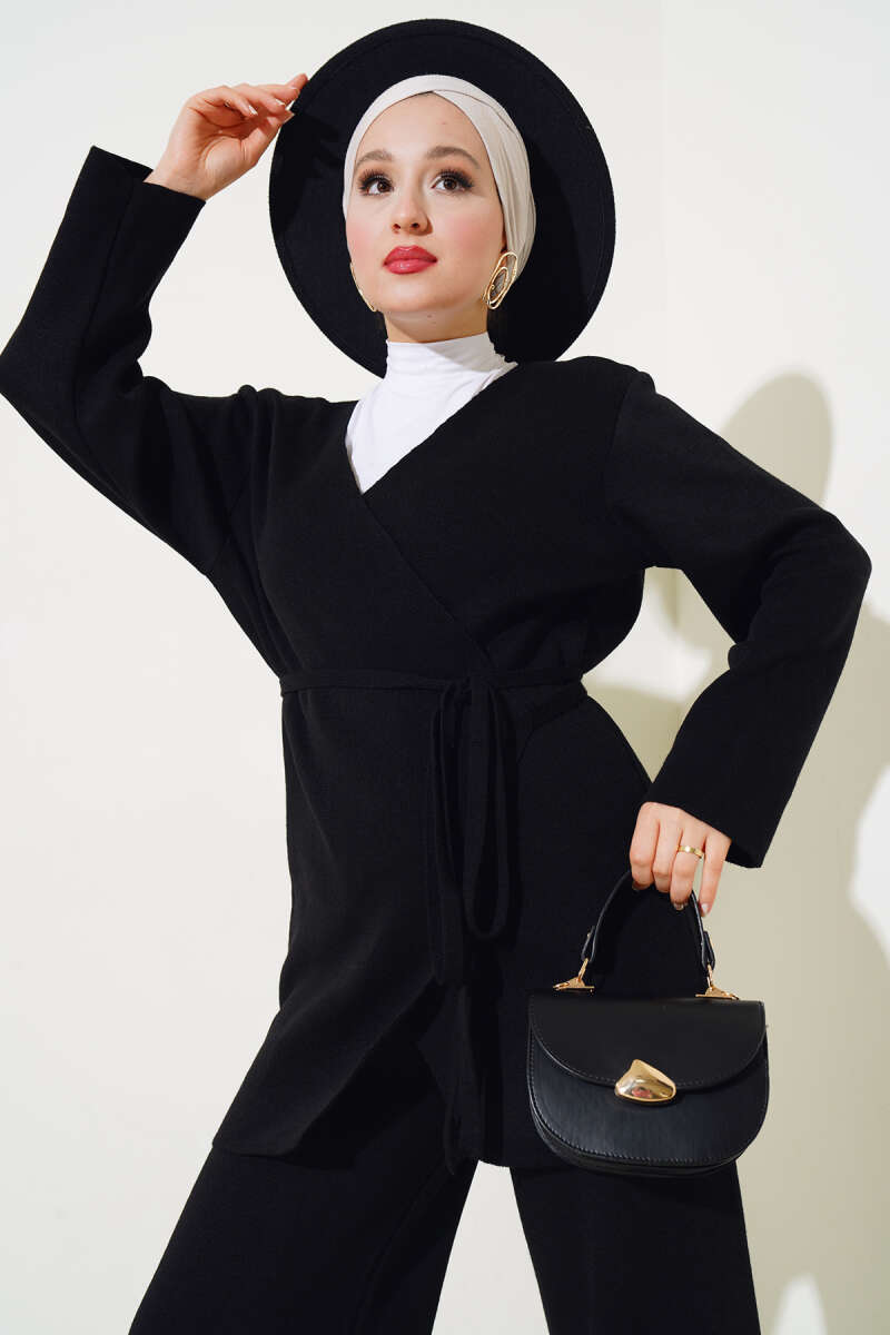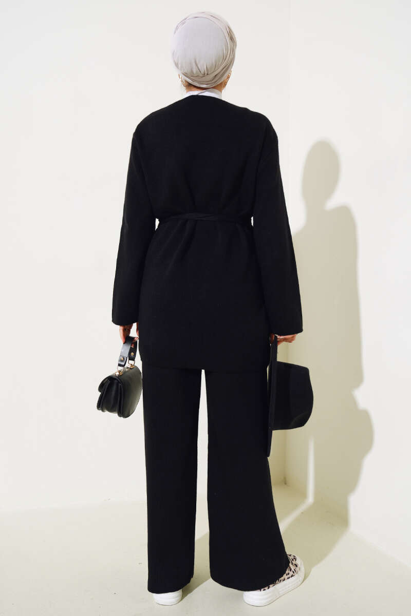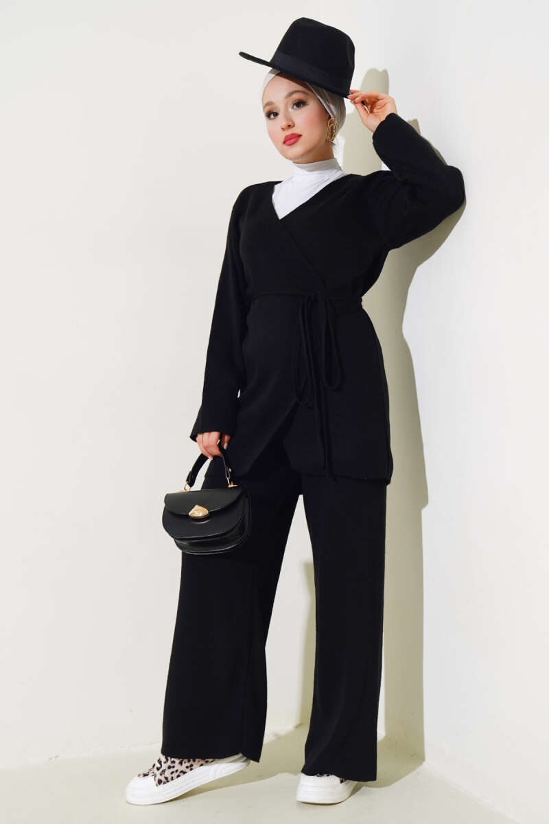 Balon Kol Balıkçı Yaka Triko İkili Takım Siyah