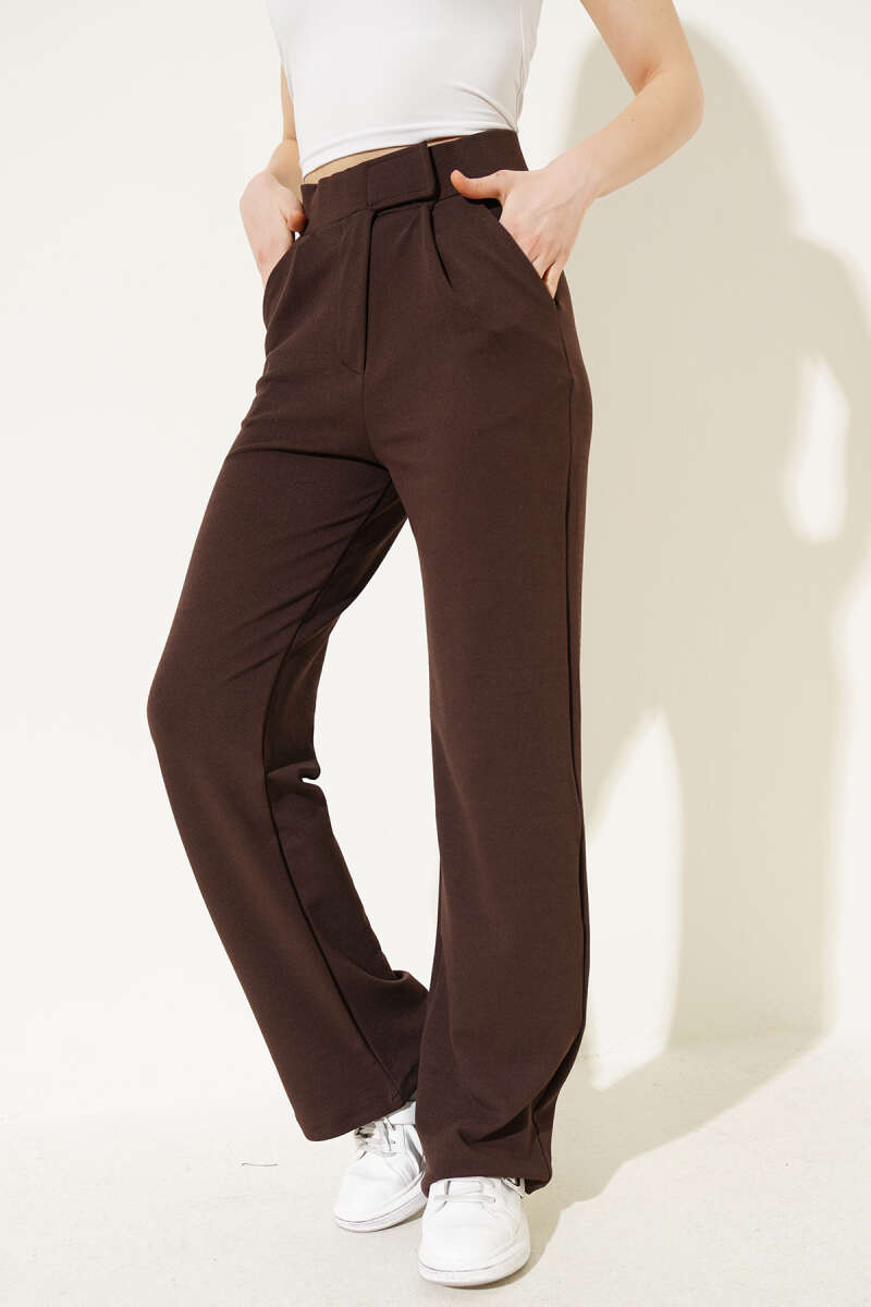 Beli Cırtlı Geniş Paça Pantolon Kahve