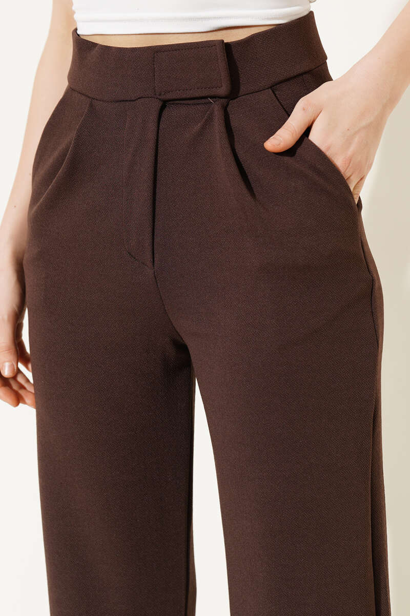 Tek Pileli Düğmeli Kumaş Pantolon Kahve