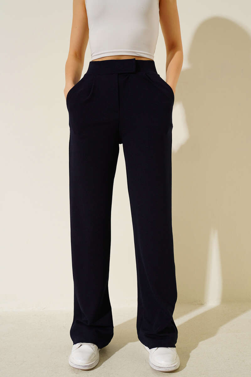 Beli Cırtlı Geniş Paça Pantolon Lacivert