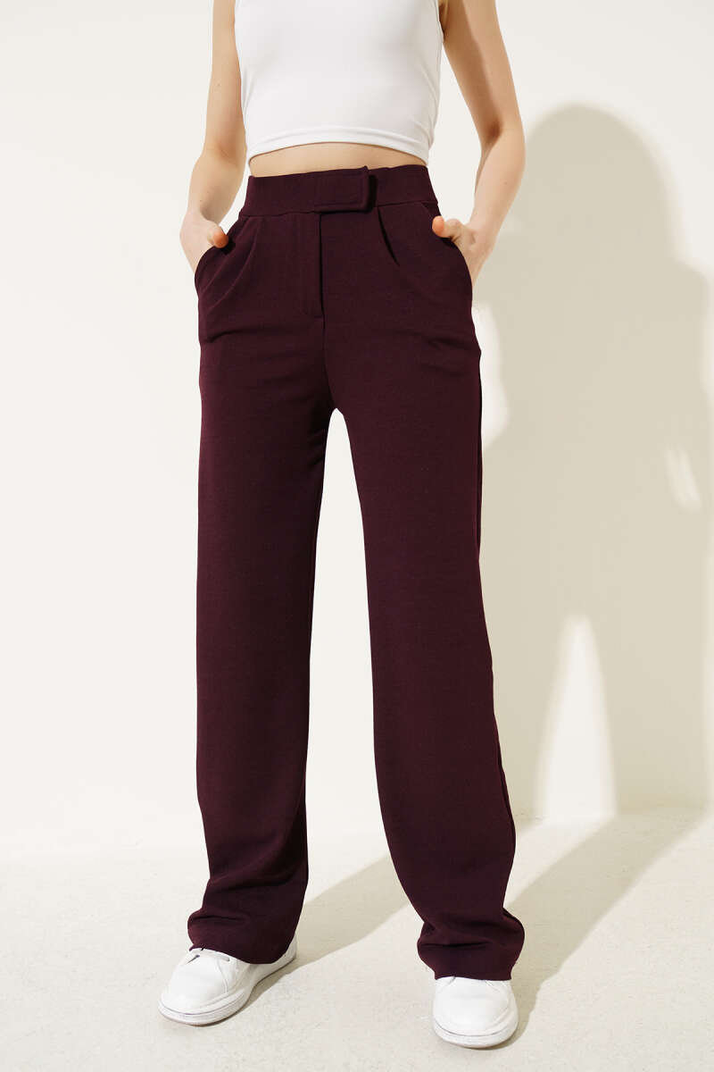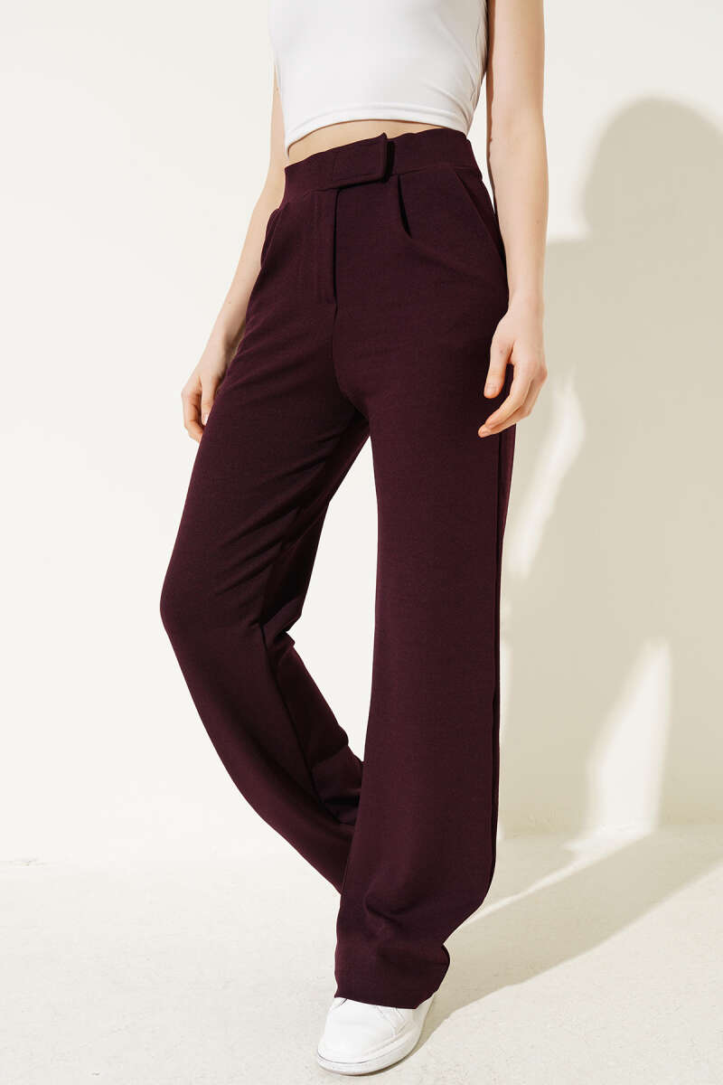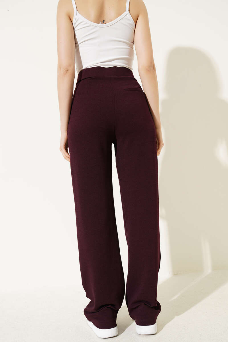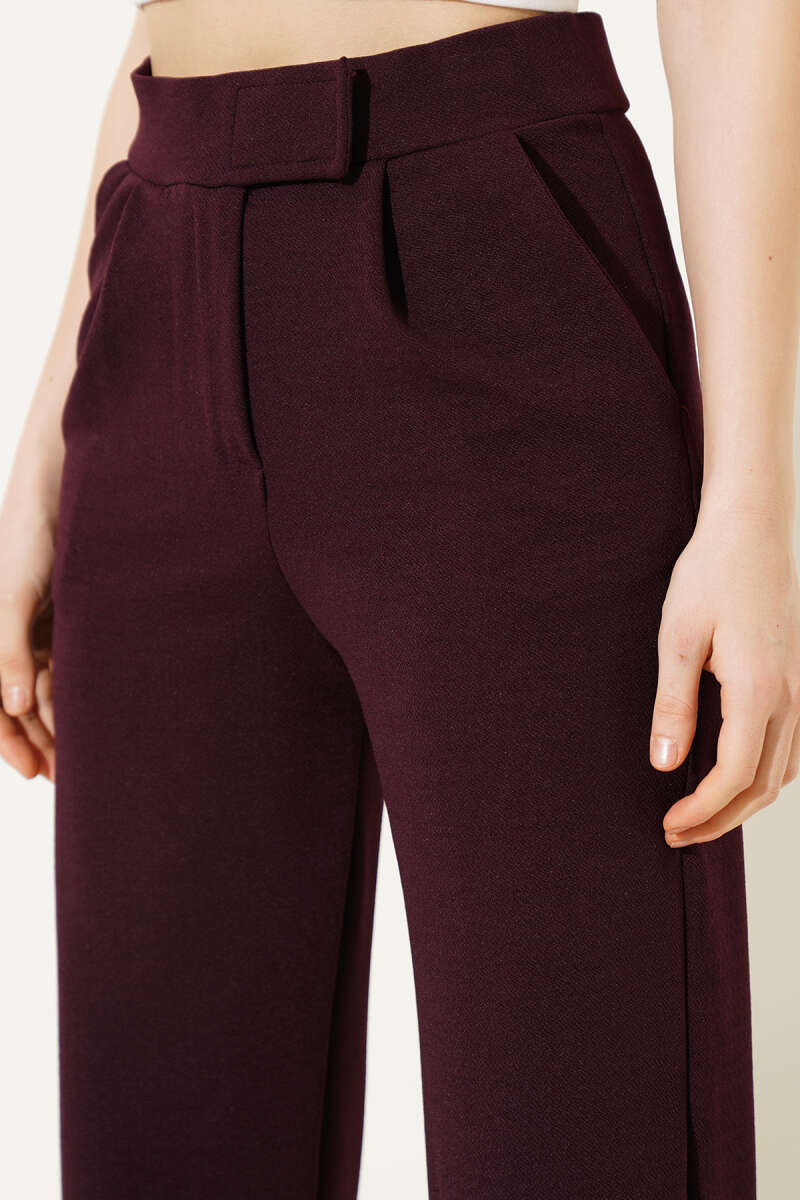 Beli Cırtlı Geniş Paça Pantolon Mürdüm