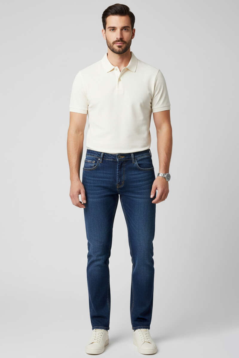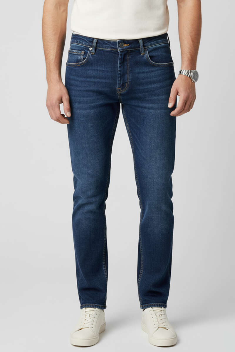 Dar Paça Likralı Erkek Kot Pantolon Lacivert