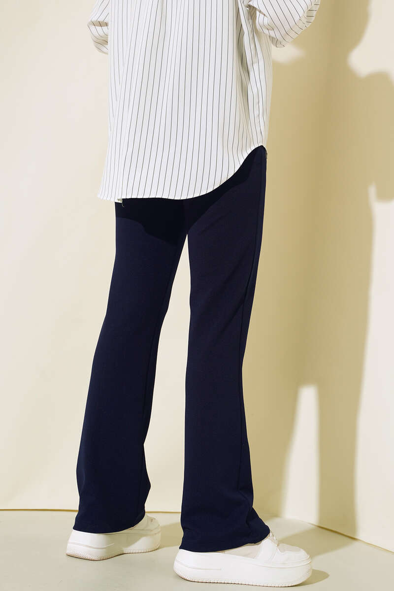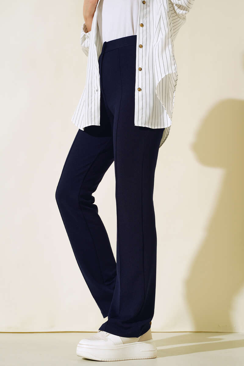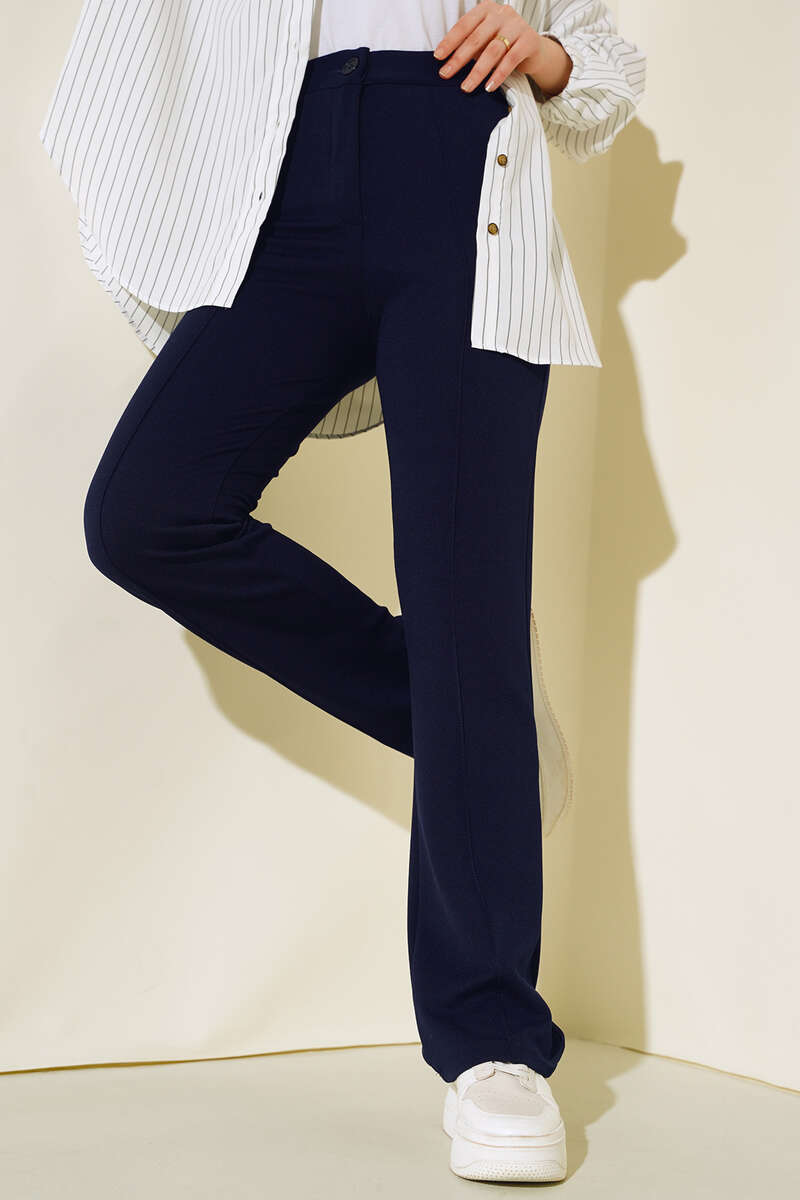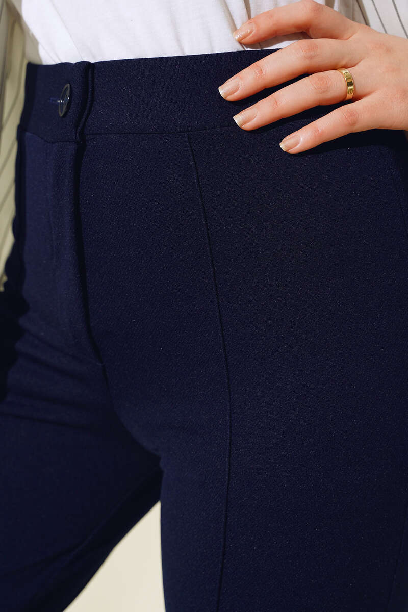 Beli Düğmeli Fermuarlı Çımalı Pantolon Lacivert