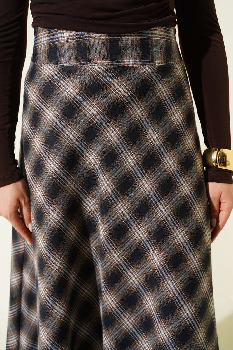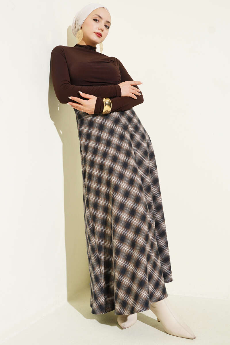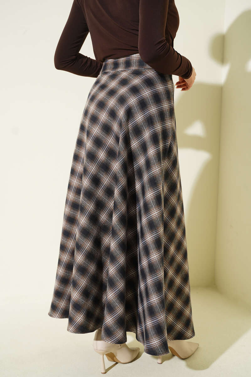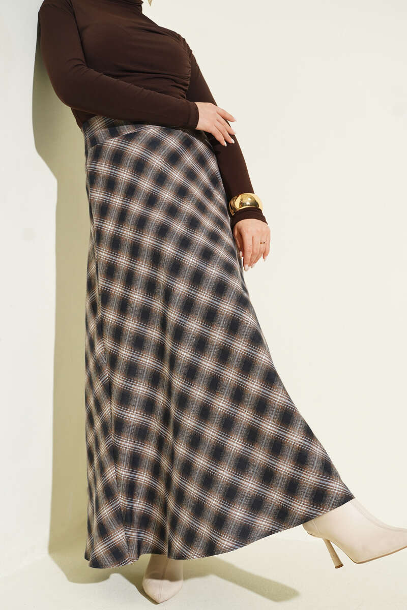 Beli Fermuarlı Ekoseli Çan Etek Siyah