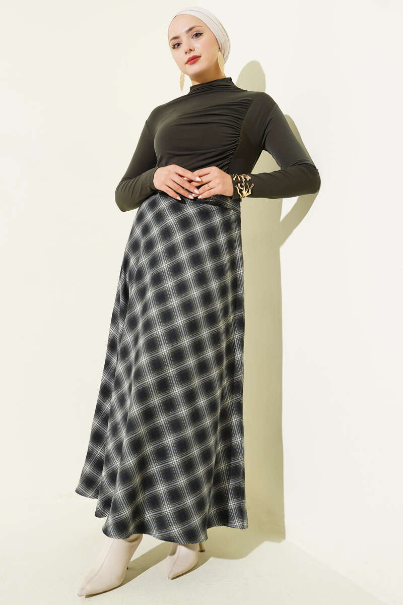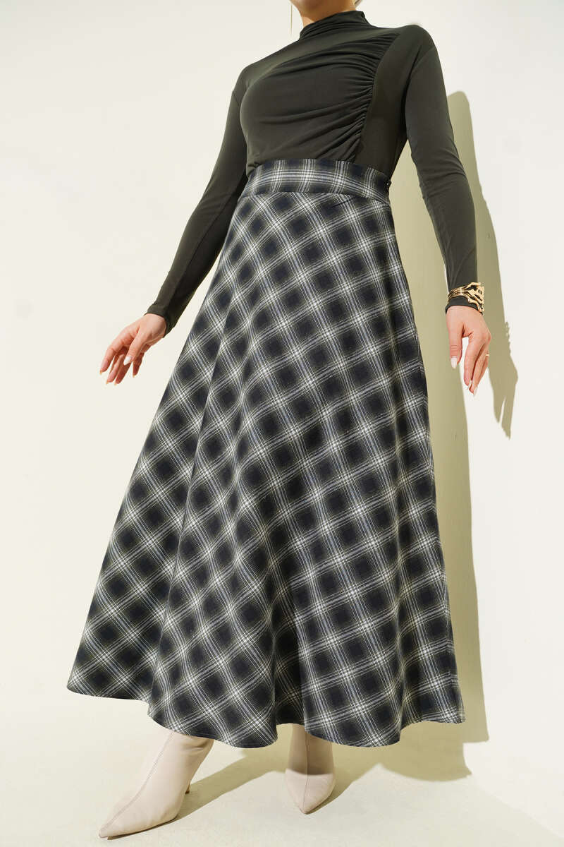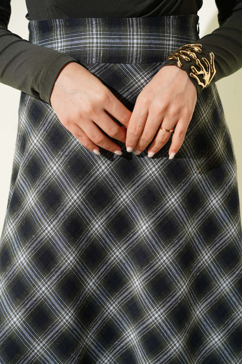 Beli Fermuarlı Ekoseli Çan Etek Siyah