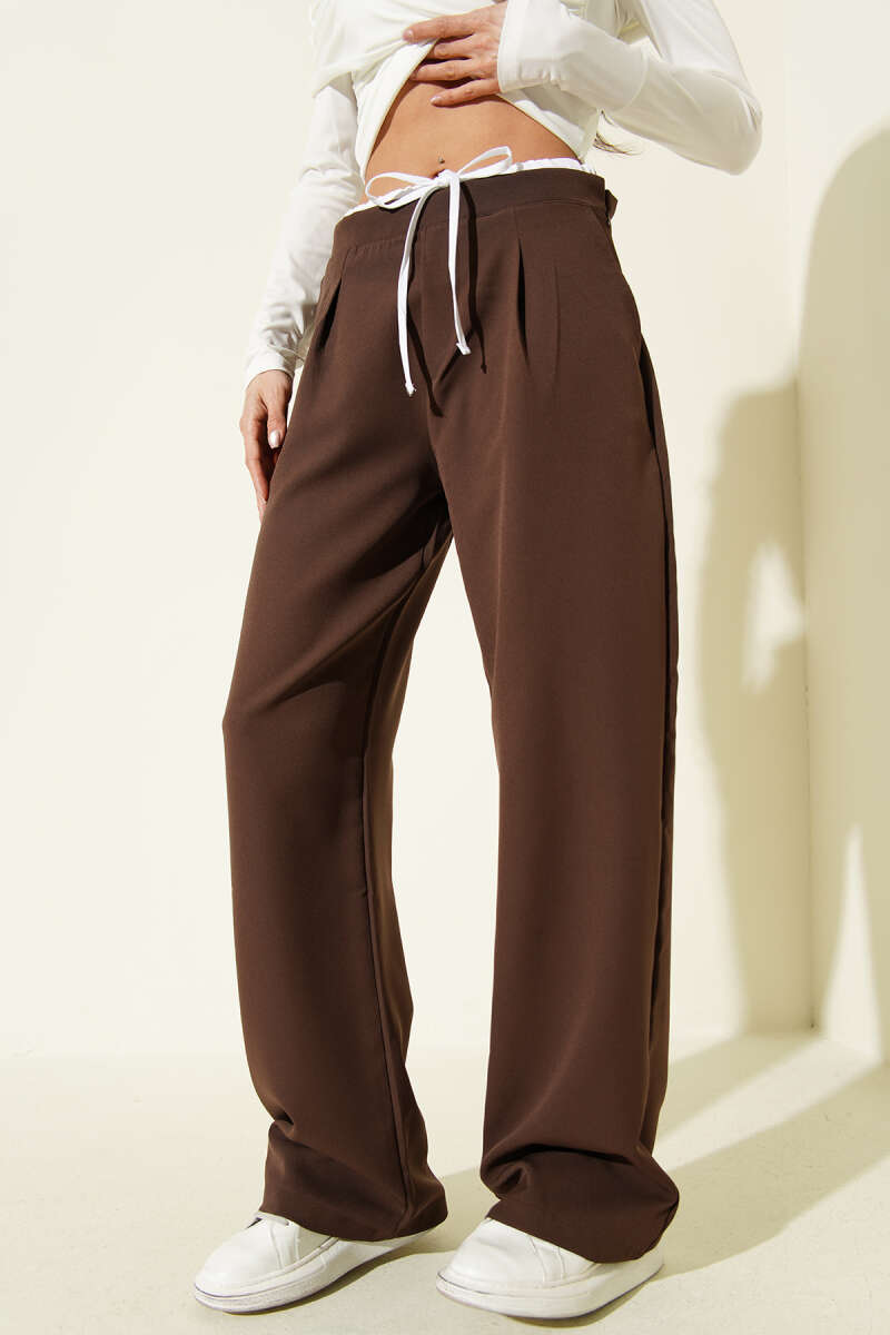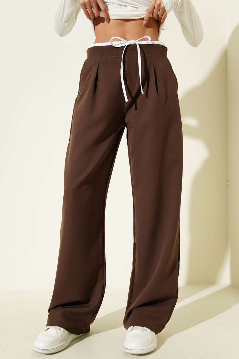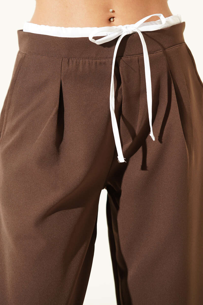 Beli Lastikli Büzgülü Pantolon Beyaz