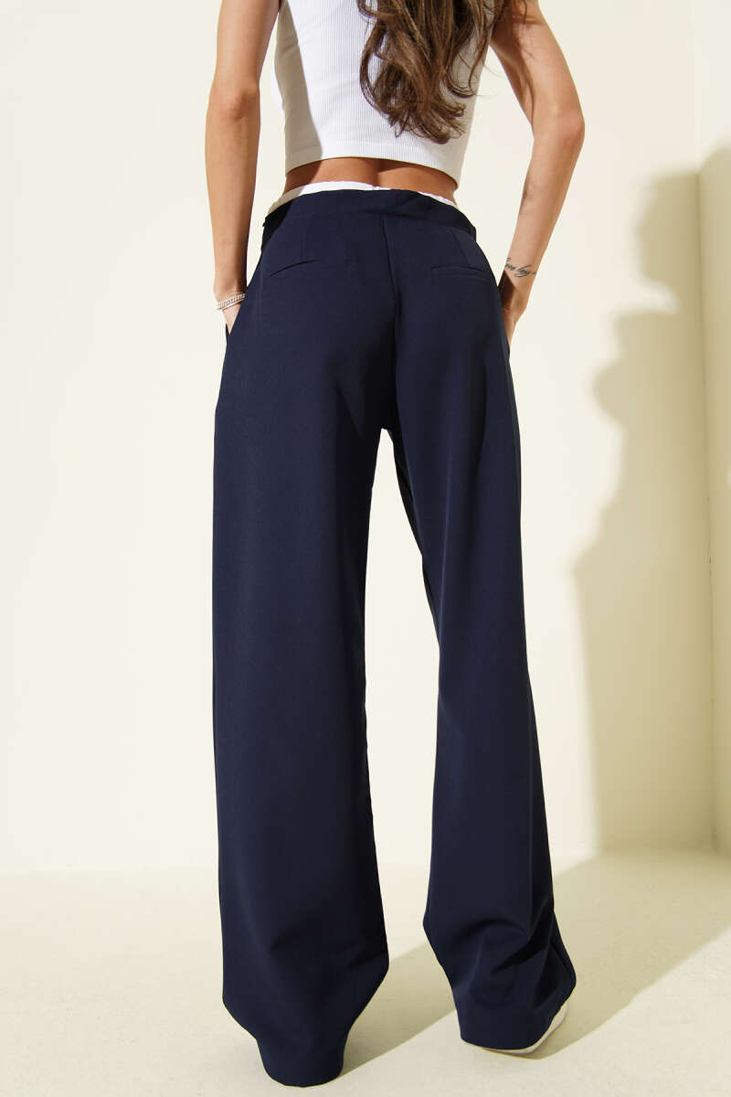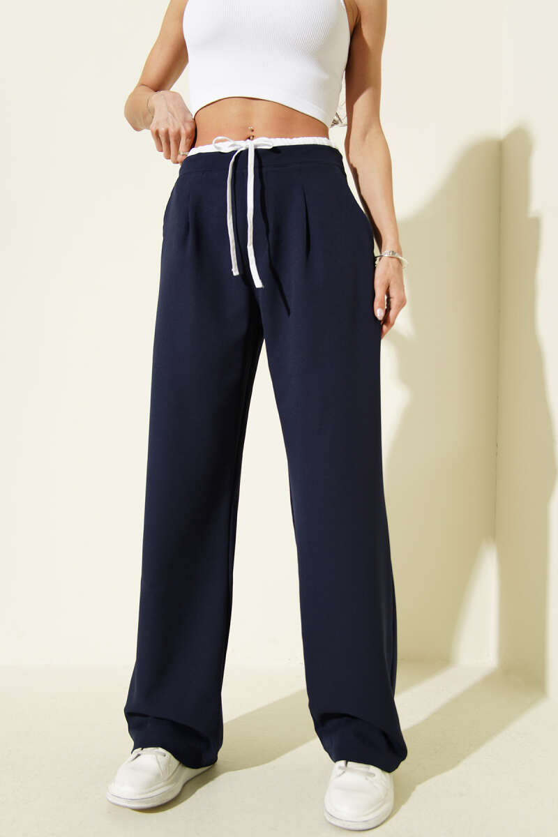 Beli Fermuarlı Garnili Pantolon Siyah