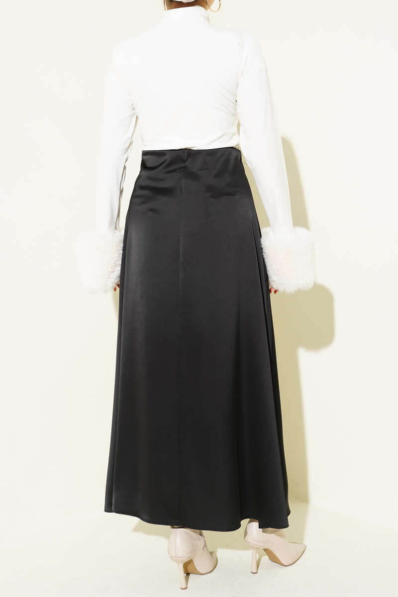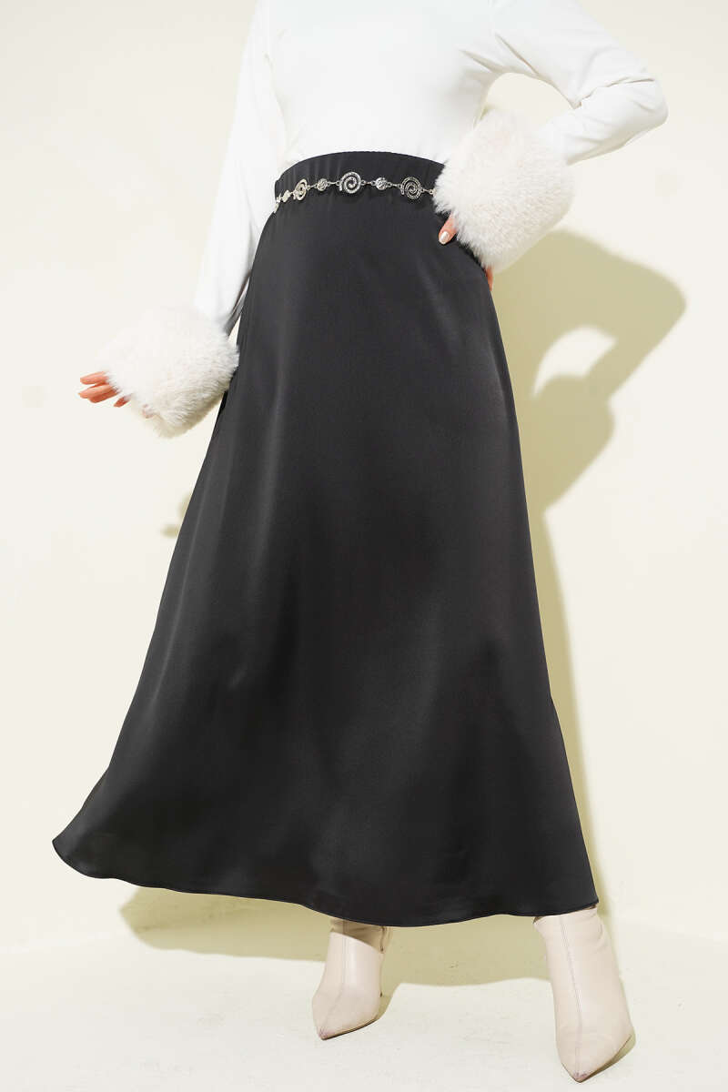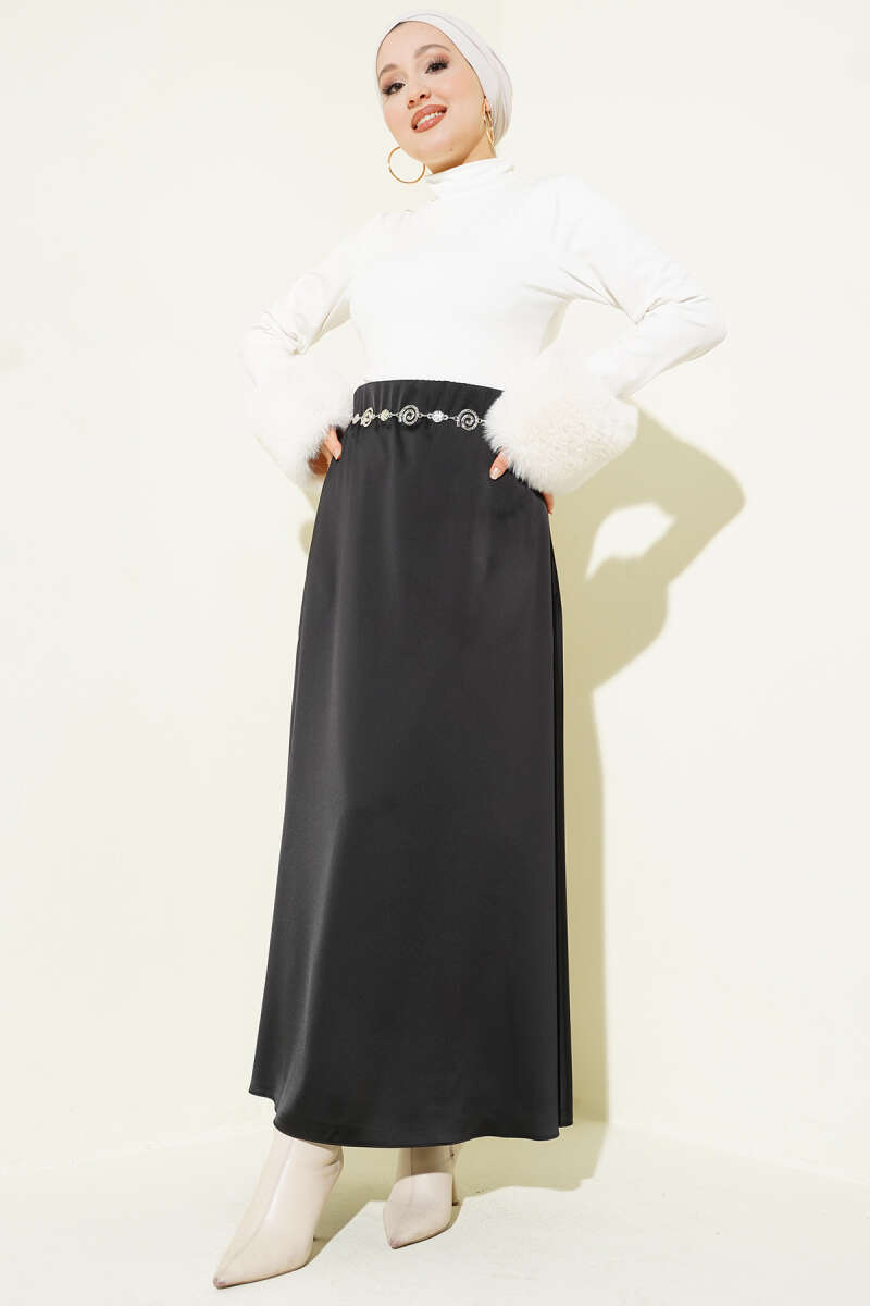 Ekose Desenli Fermuarlı Kaşe Etek Siyah