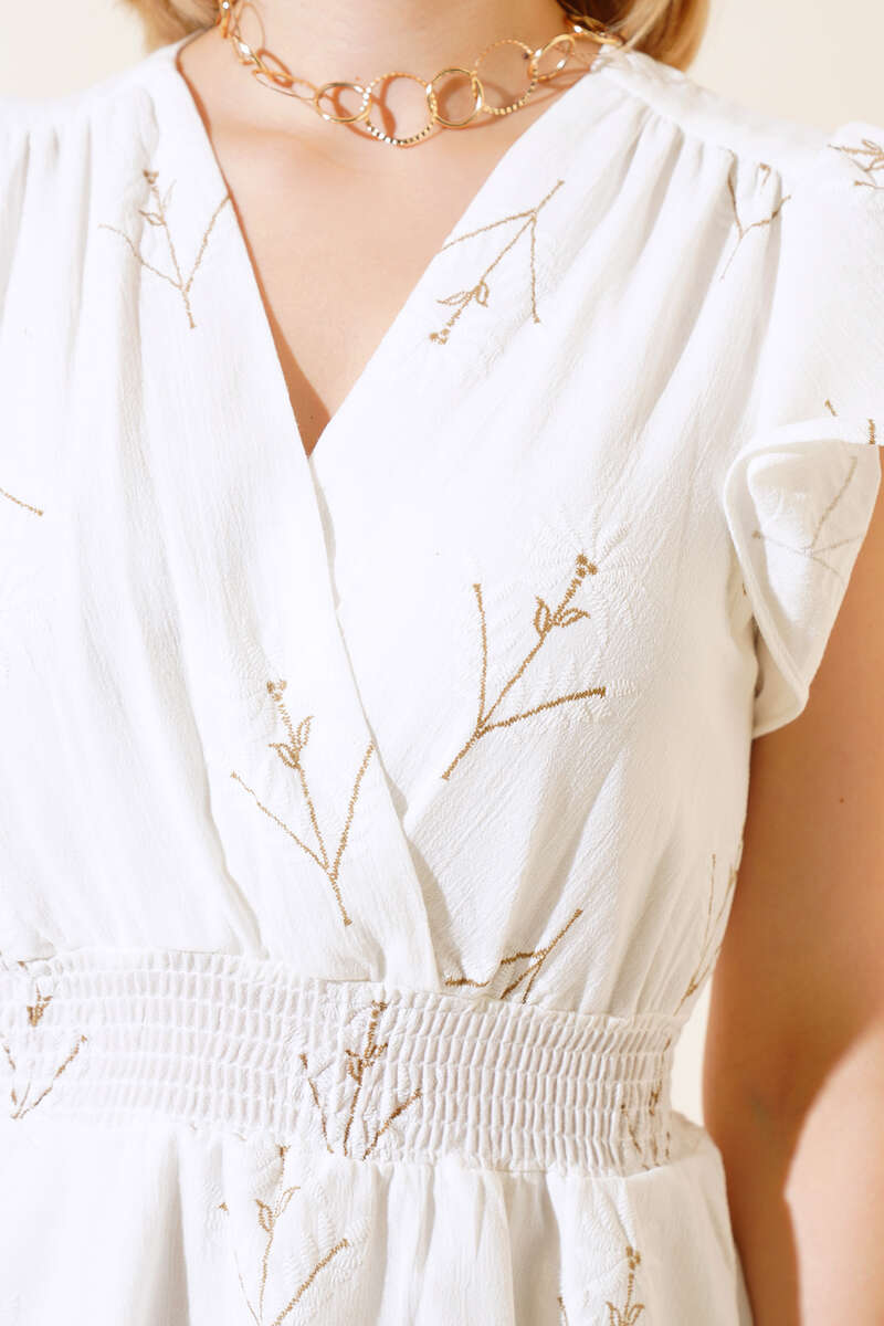 Beli Gipeli Çiçekli Elbise Ekru Kahve