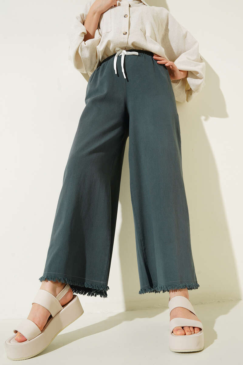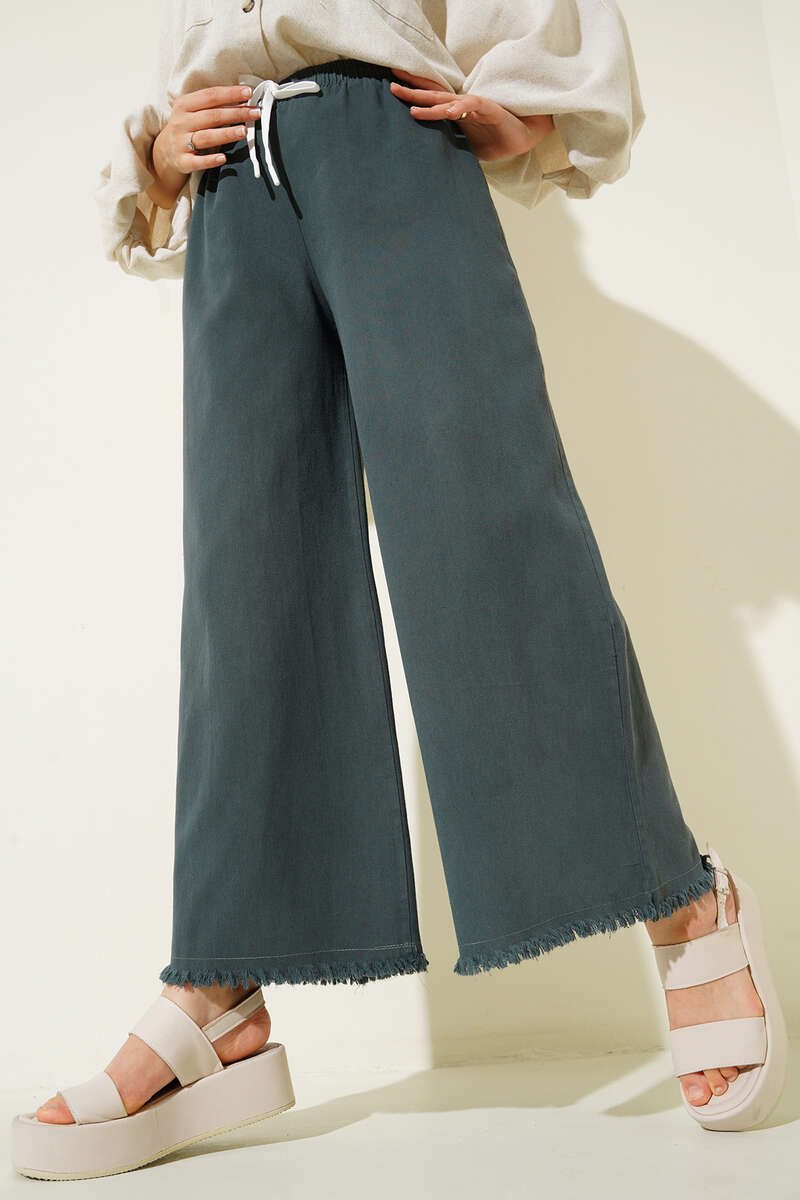Yeni sezon paçası yırtık detaylı pantolonumuz sizlerle. Beli lastikli ve ip bağlamalı olan pantolonumuz tarzıyla bu yazın en şık modellerindendir. Pantolonumuz, günlük kombinlerinize rahat ve şık bir dokunuş yapmak istiyorsanız doğru tercih olacaktır. Paçası geniş ve oldukça rahattır. Renk seçenekleri mevcuttur.