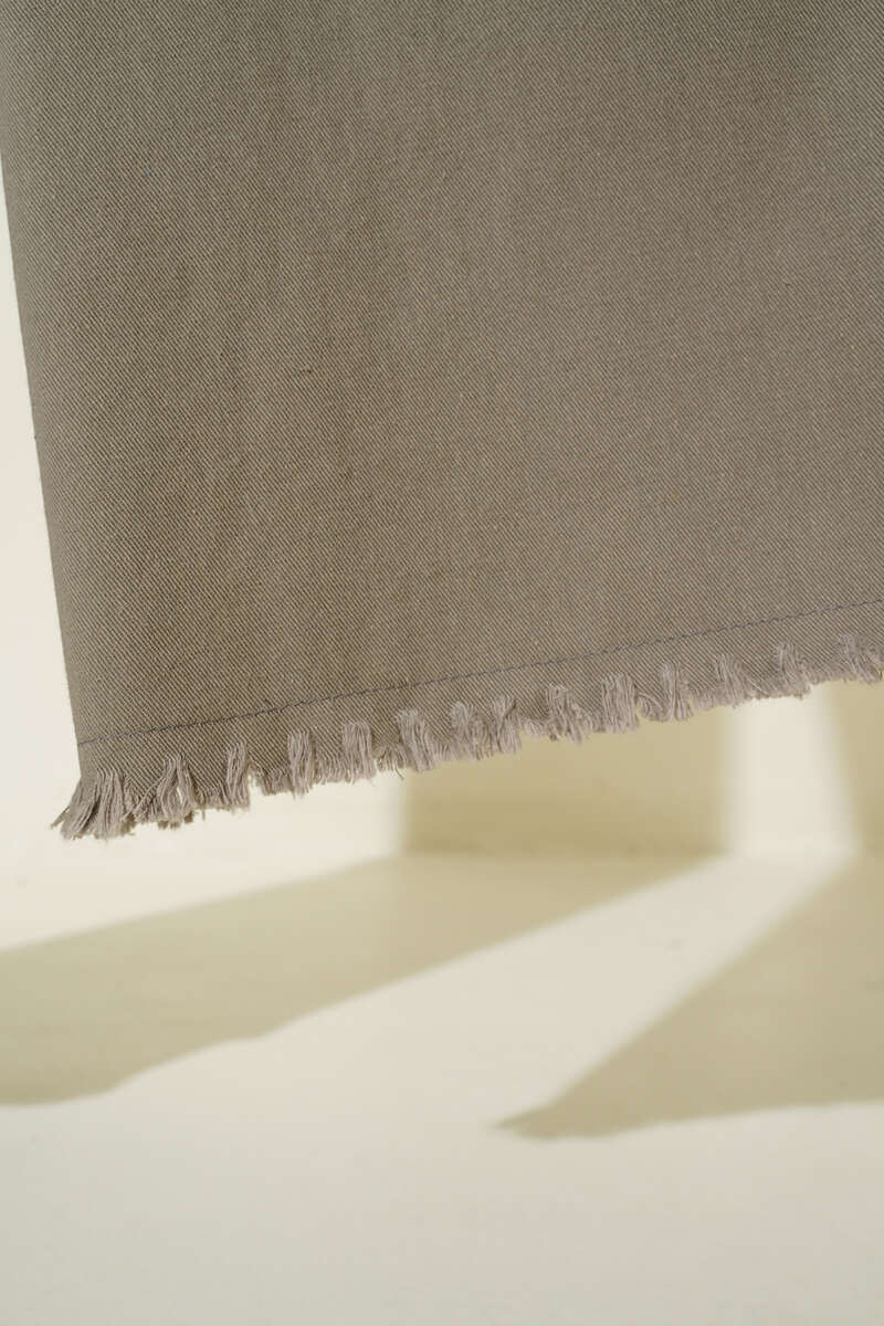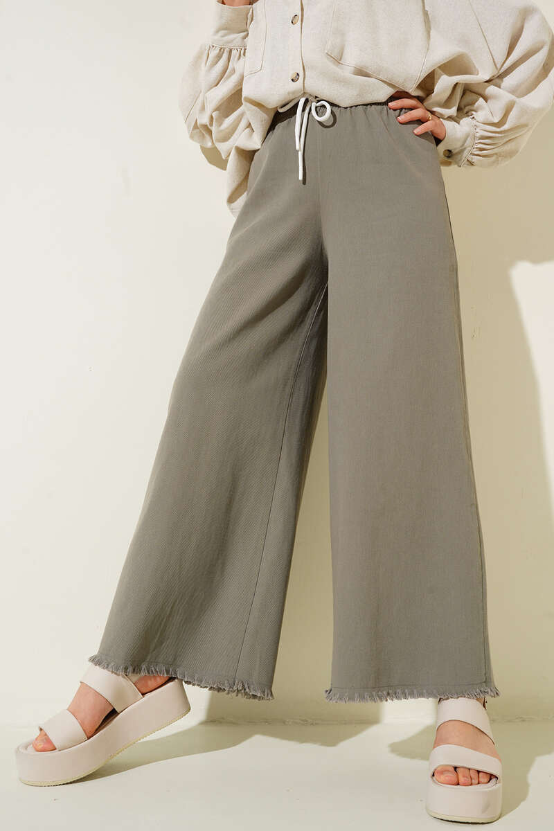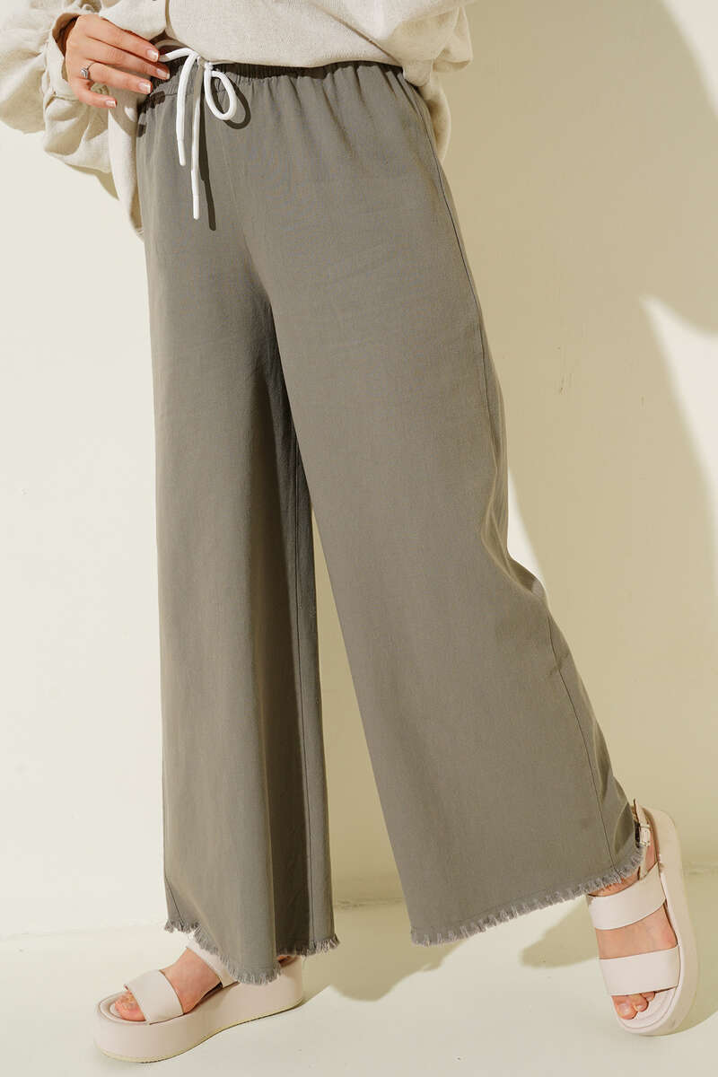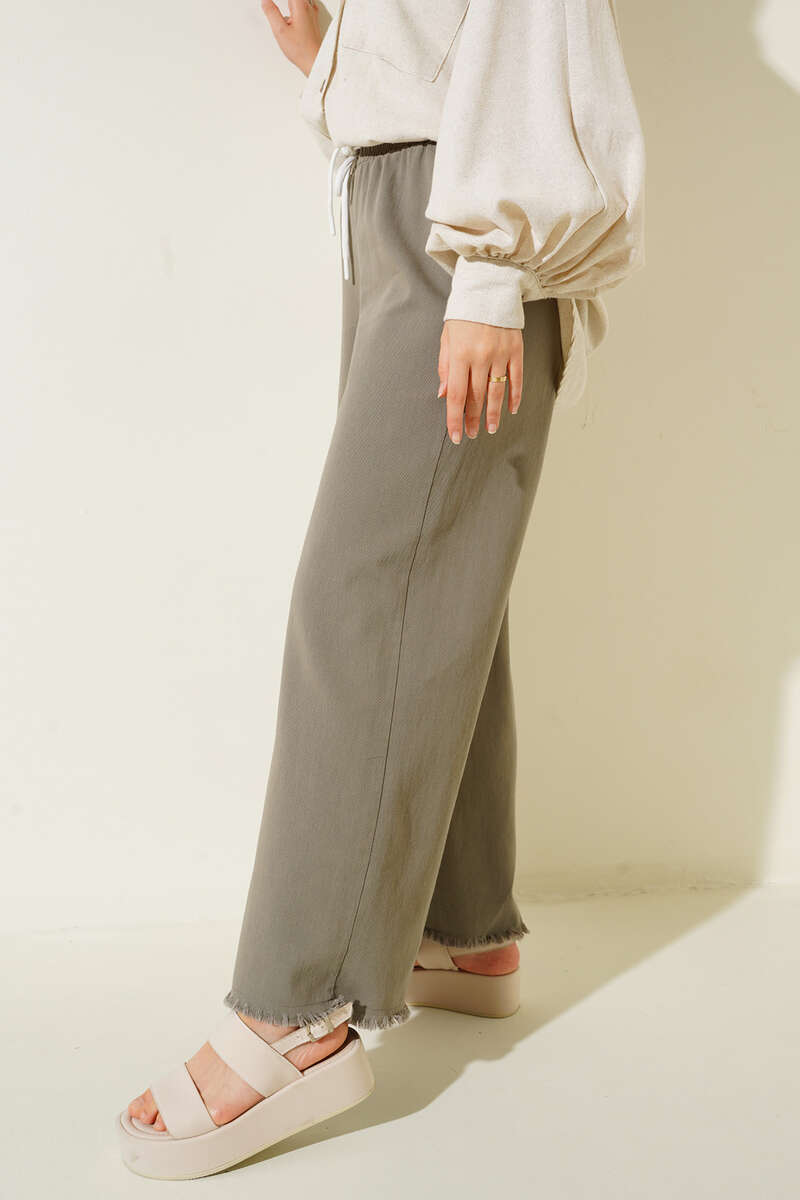 Beli İp Bağlamalı Paçası Yırtık Detaylı Pantolon Taş