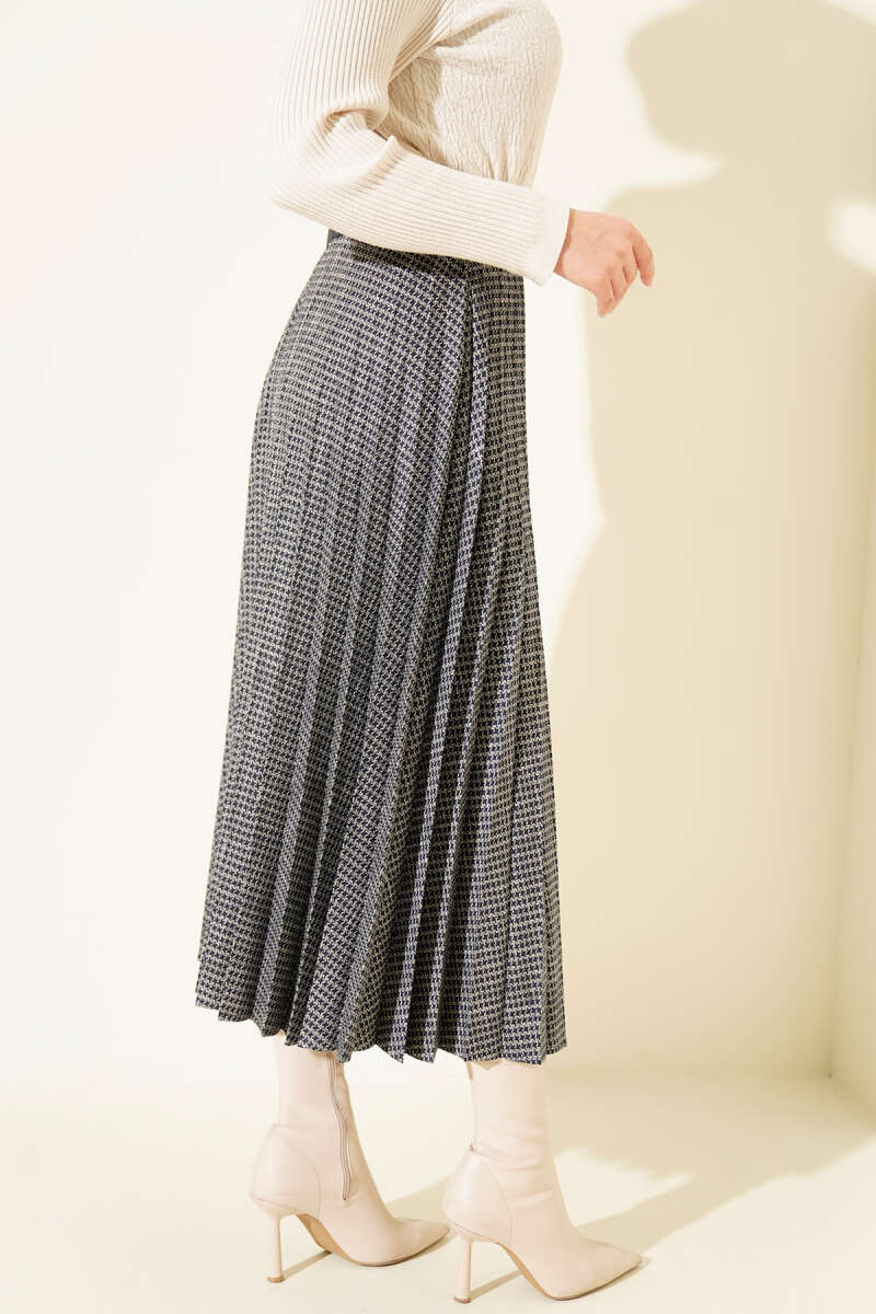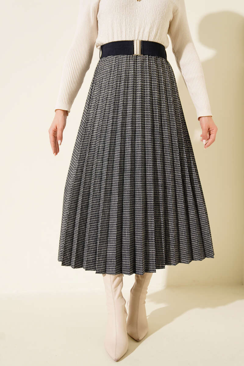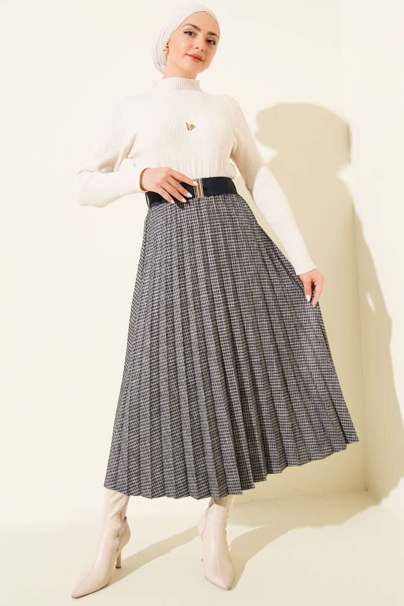 Beli Kemerli Lastikli Pileli Etek Vizon