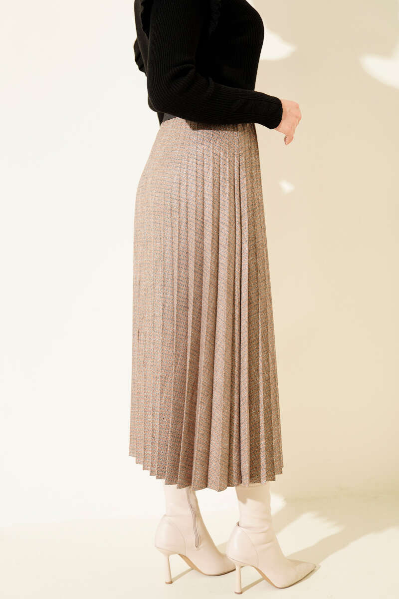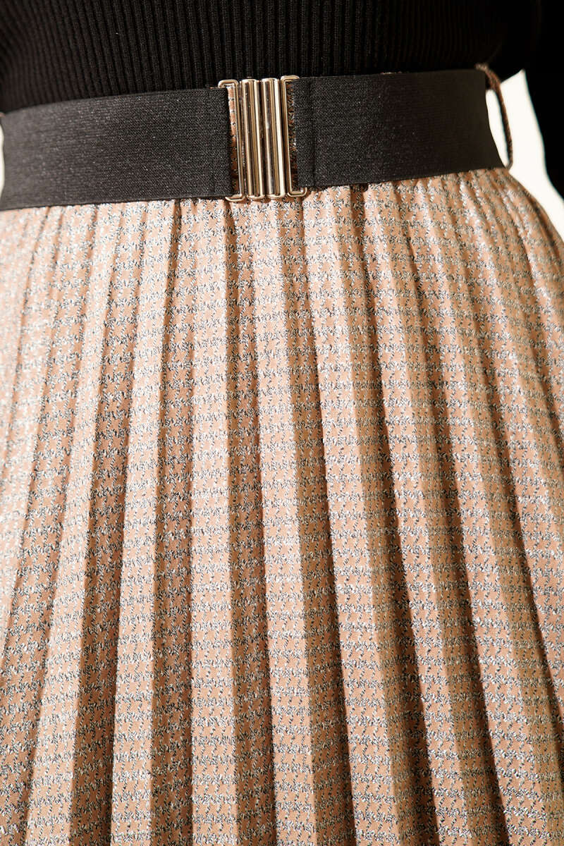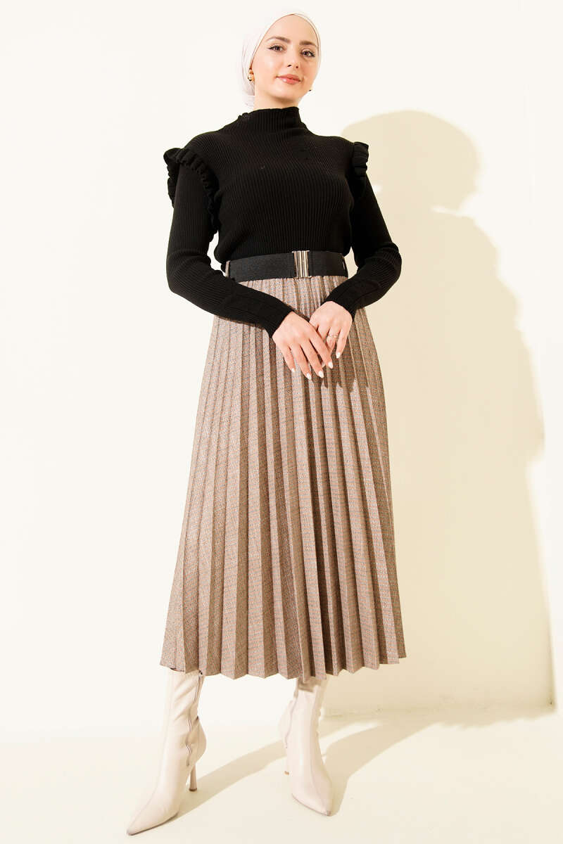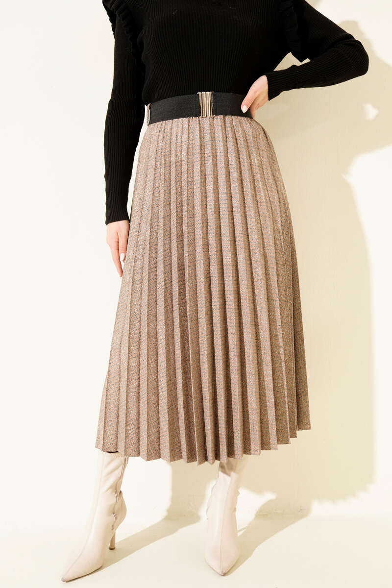 Beli Kemerli Lastikli Pileli Etek Lacivert