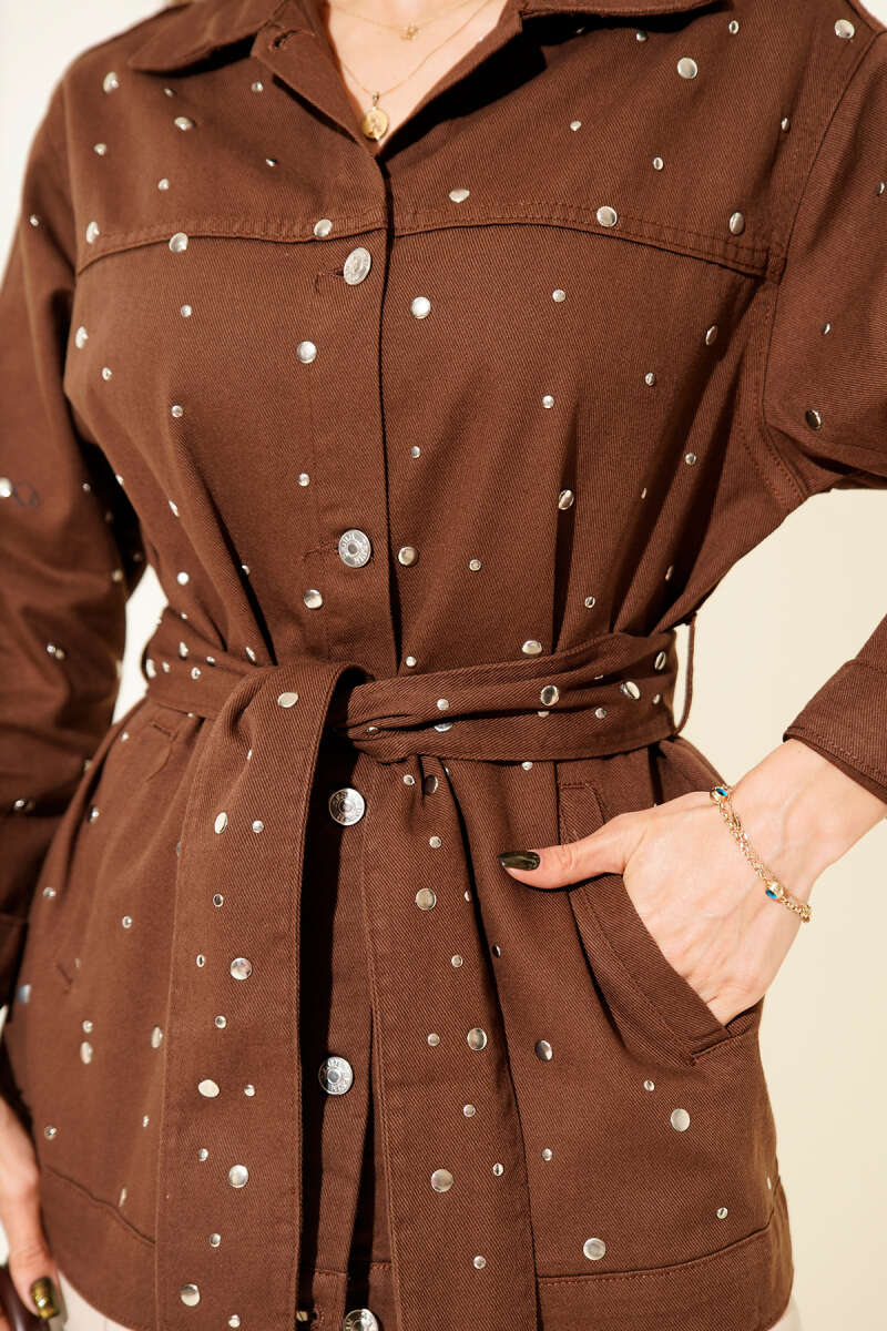 Beli Kuşaklı Gabardin Kot Ceket Kahve