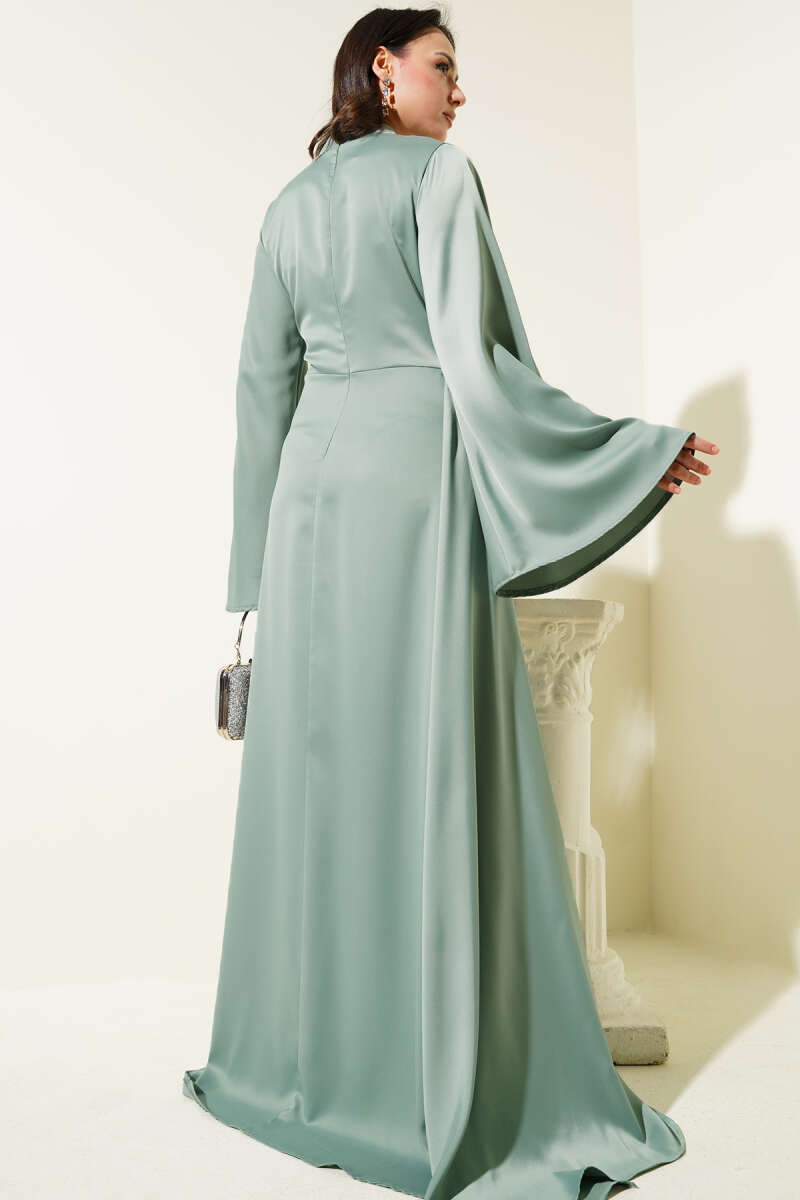 Bel Taşlı Pelerinli Abiye Elbise Kahve