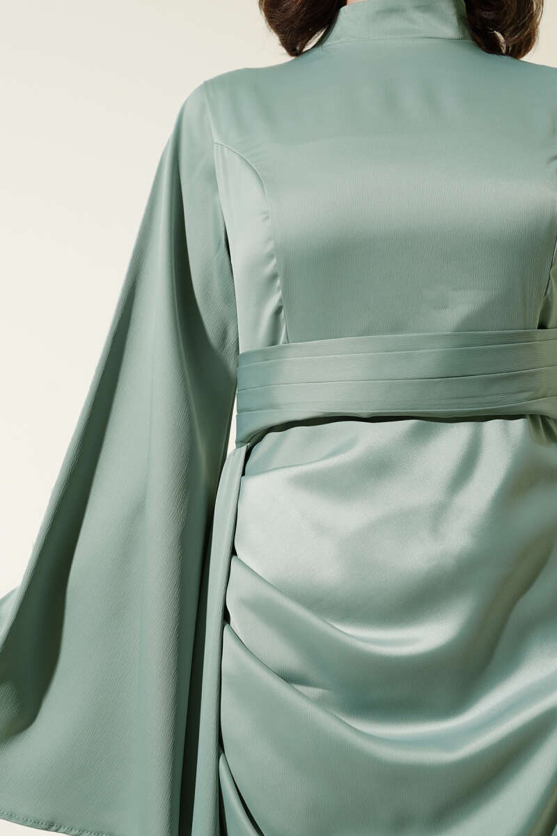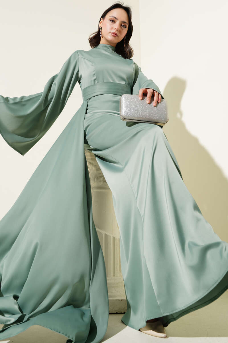 Bel Taşlı Pelerinli Abiye Elbise Siyah