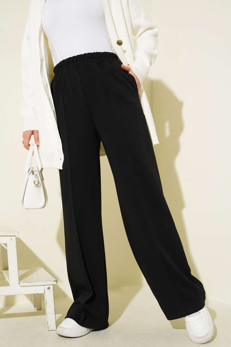 Beli Lastik Detaylı Çımalı Pantolon Siyah