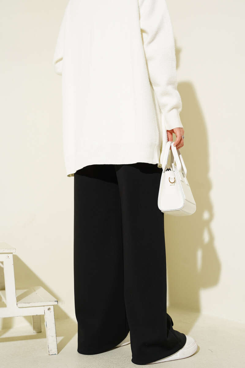 Paça Yırtmaçlı Scuba Pantolon Siyah
