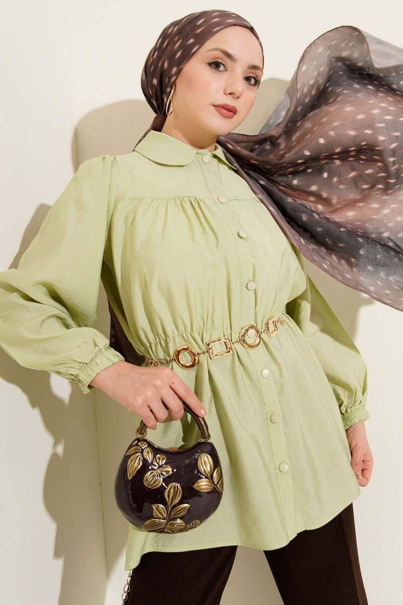 Beli Lastik Detaylı Gömlek Fıstık Yeşili
