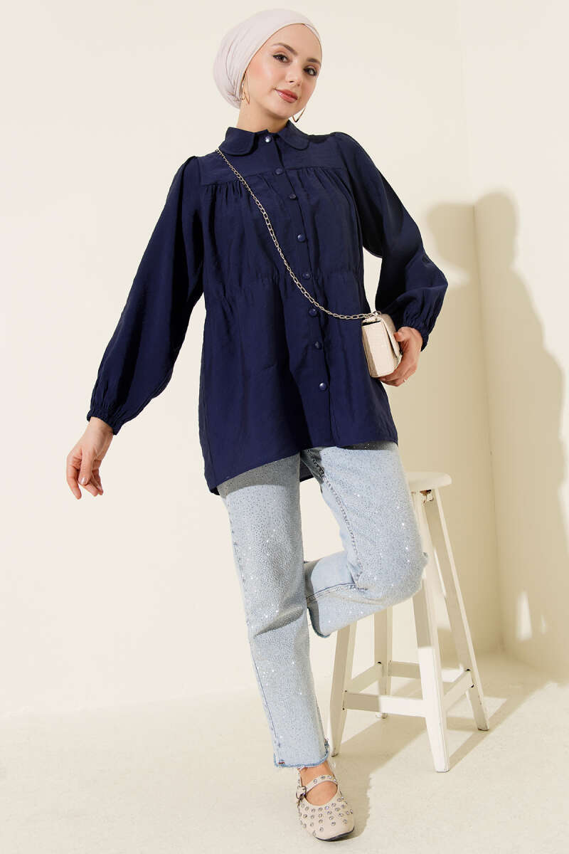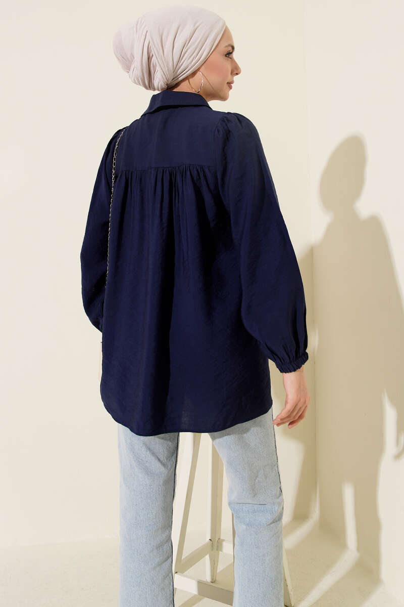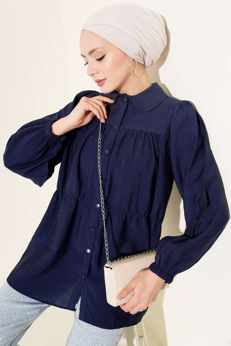 Beli Lastik Detaylı Gömlek Lacivert