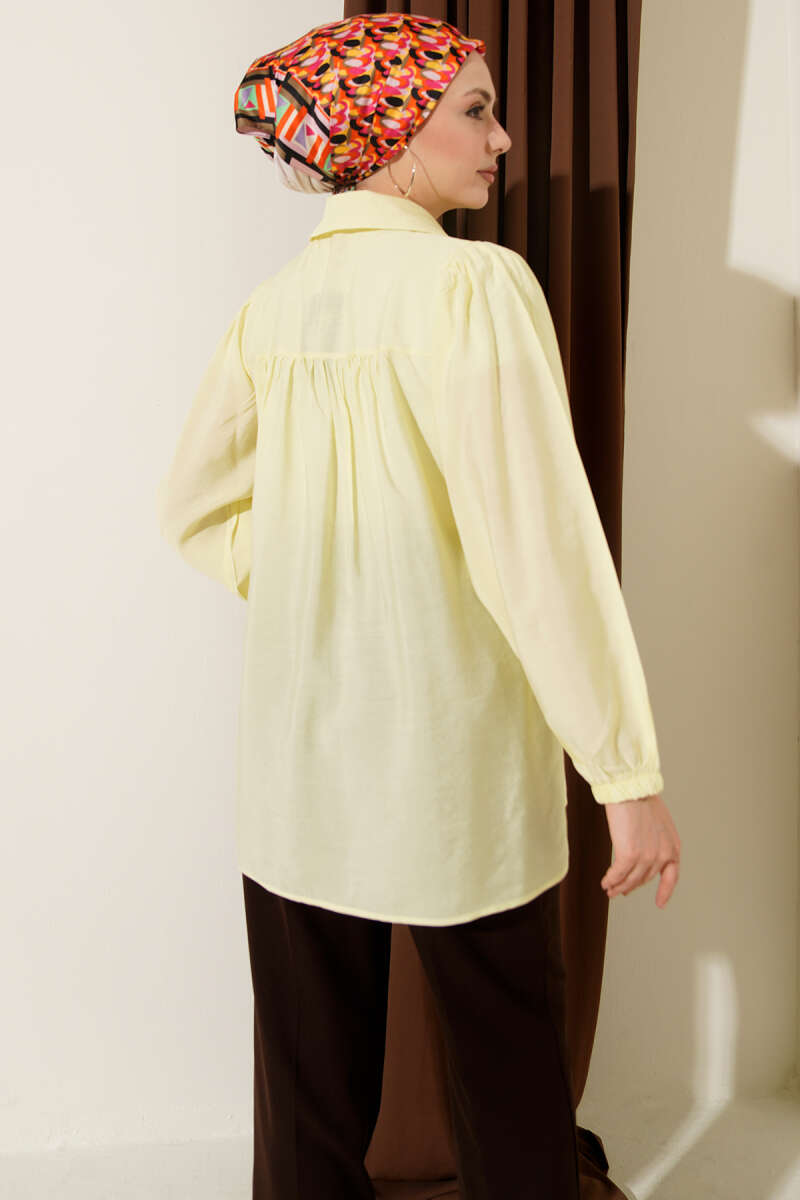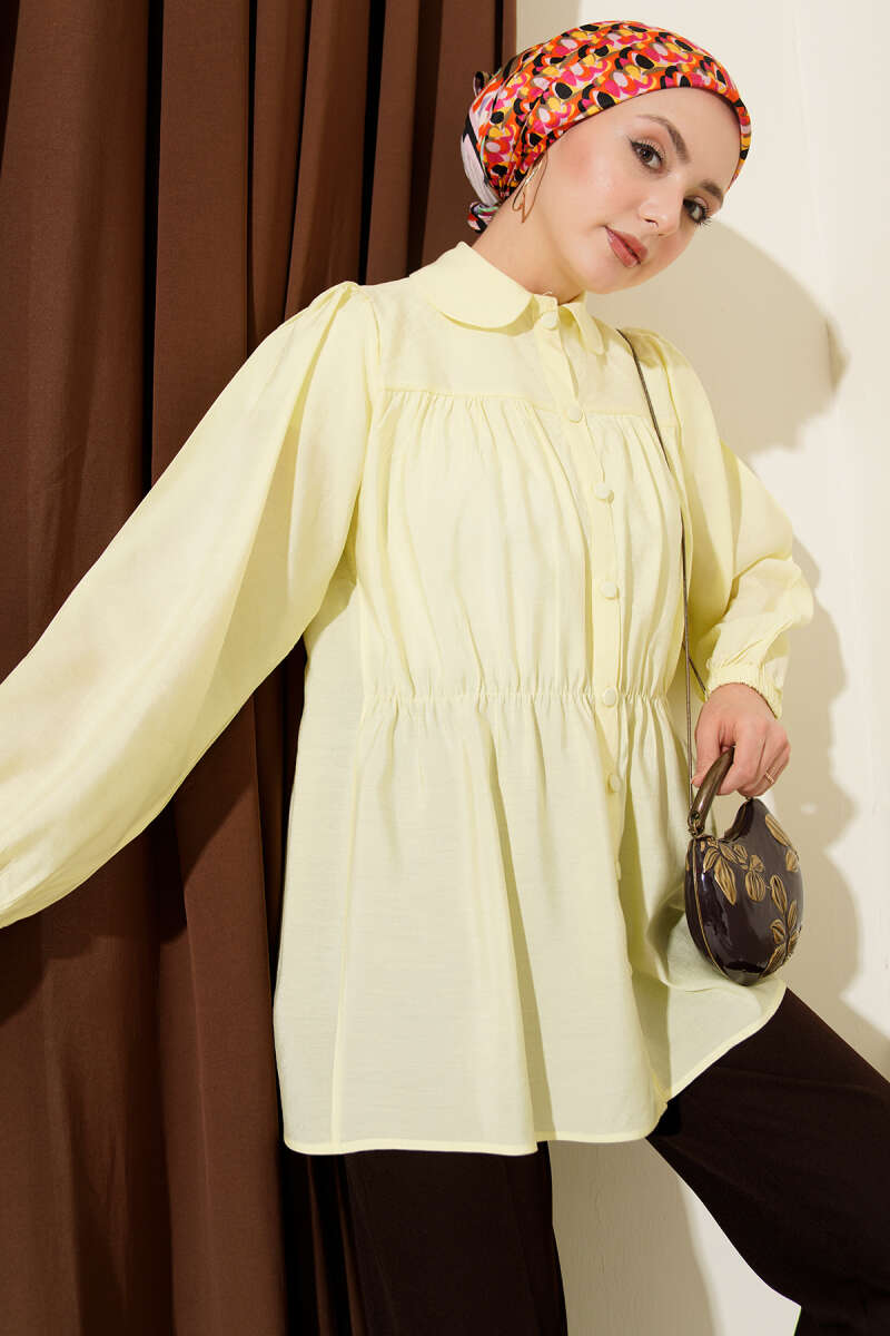 Beli Lastik Detaylı Gömlek Sarı
