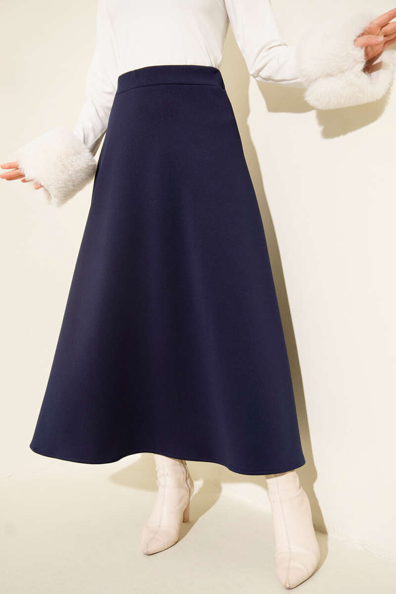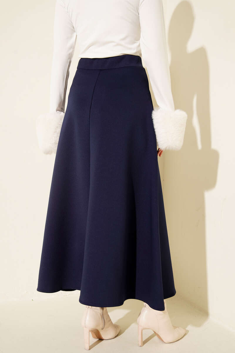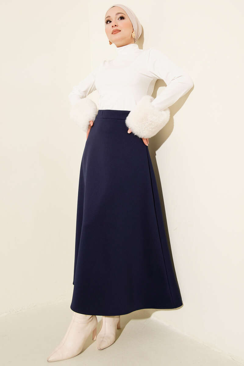 Beli Lastik Detaylı Kloş Scuba Etek Siyah