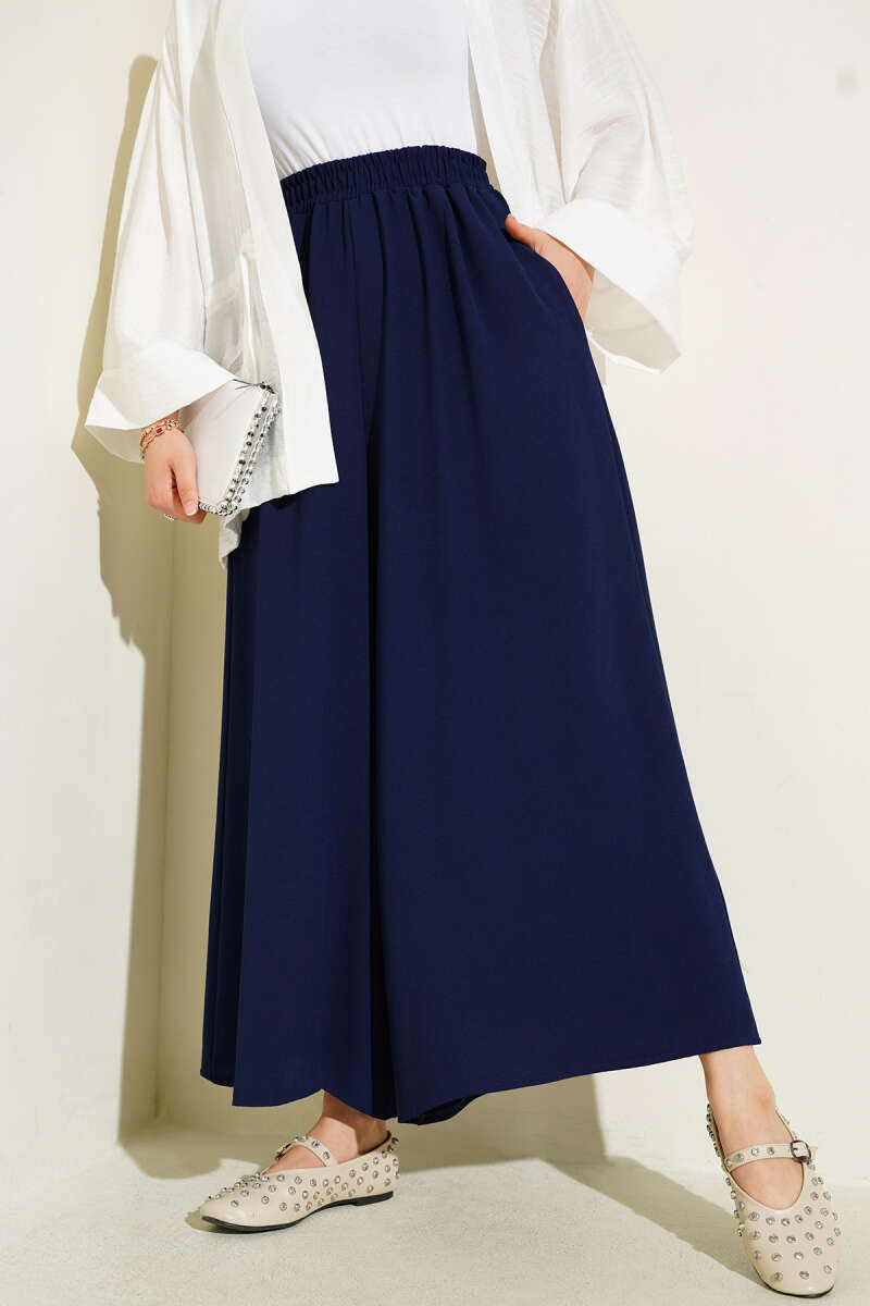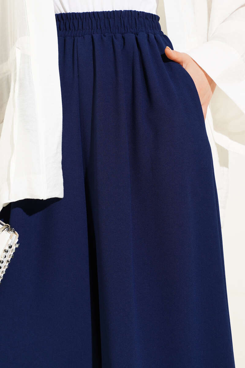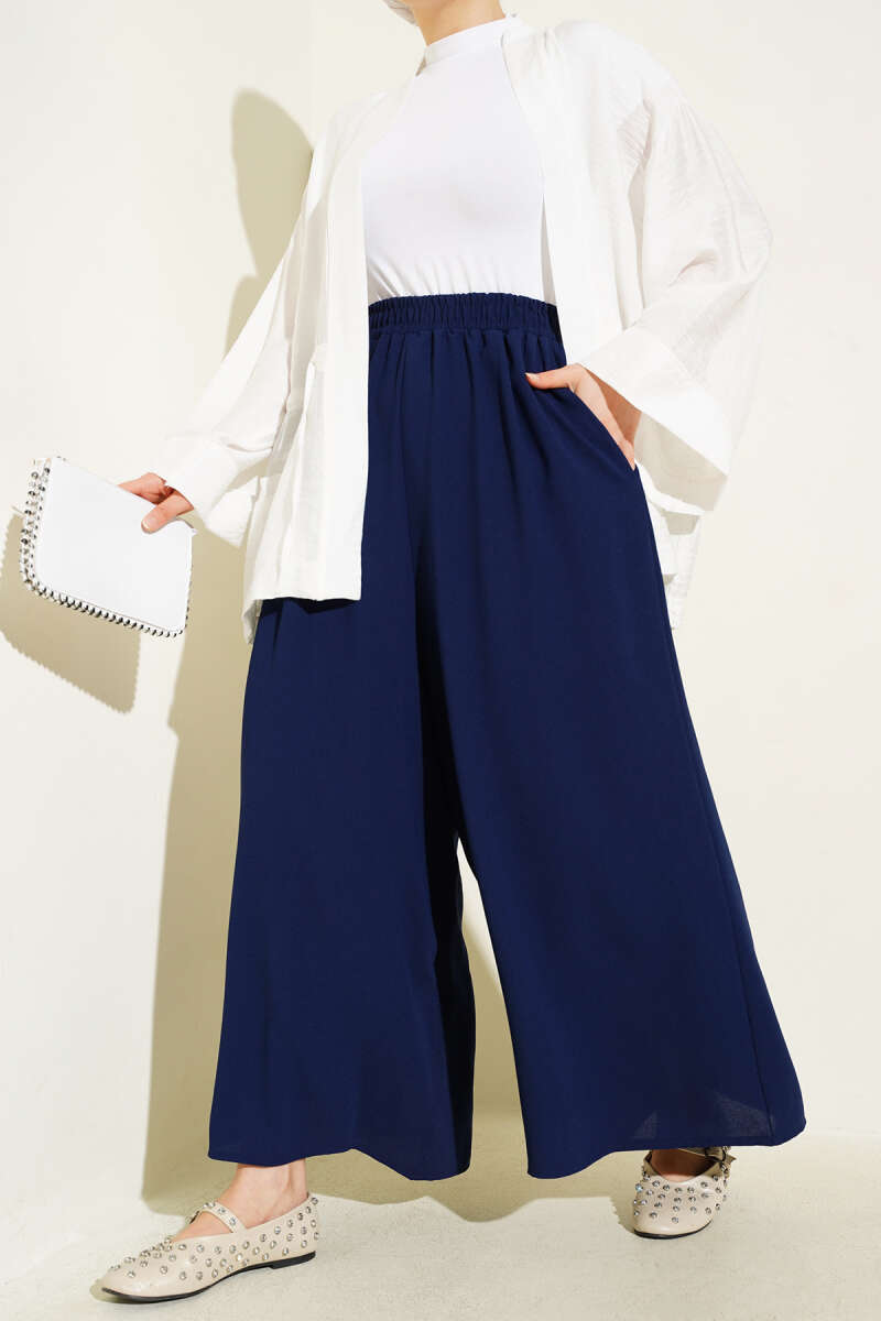 Beli Lastik Detaylı Salaş Pantolon Lacivert