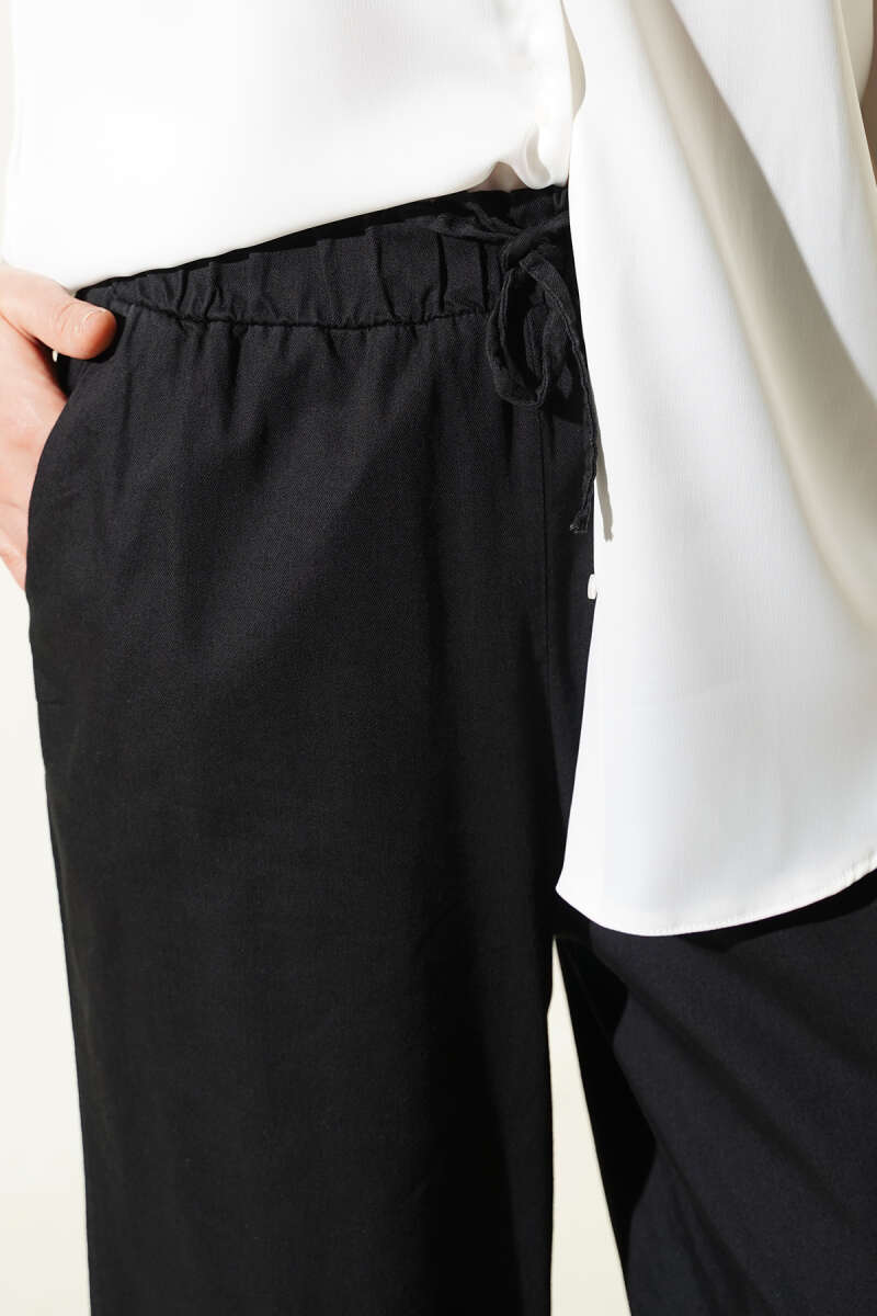 Yarım Bel Lastikli Palazzo Pantolon Siyah
